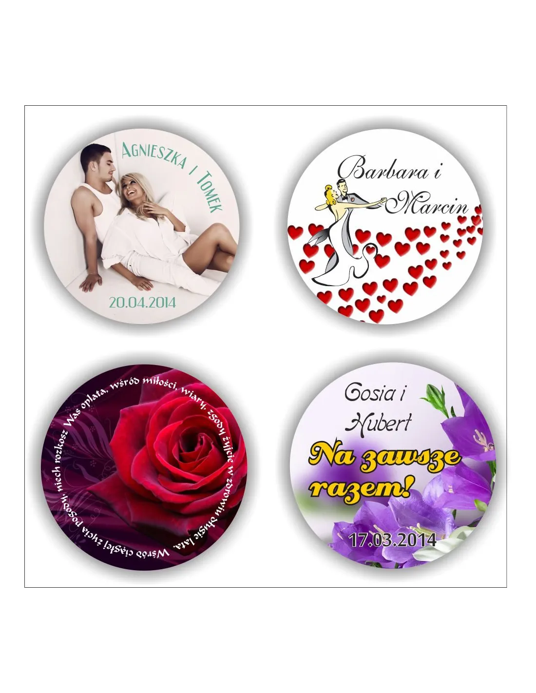 Dostępne gotowe wzory przypinek i buttonów: