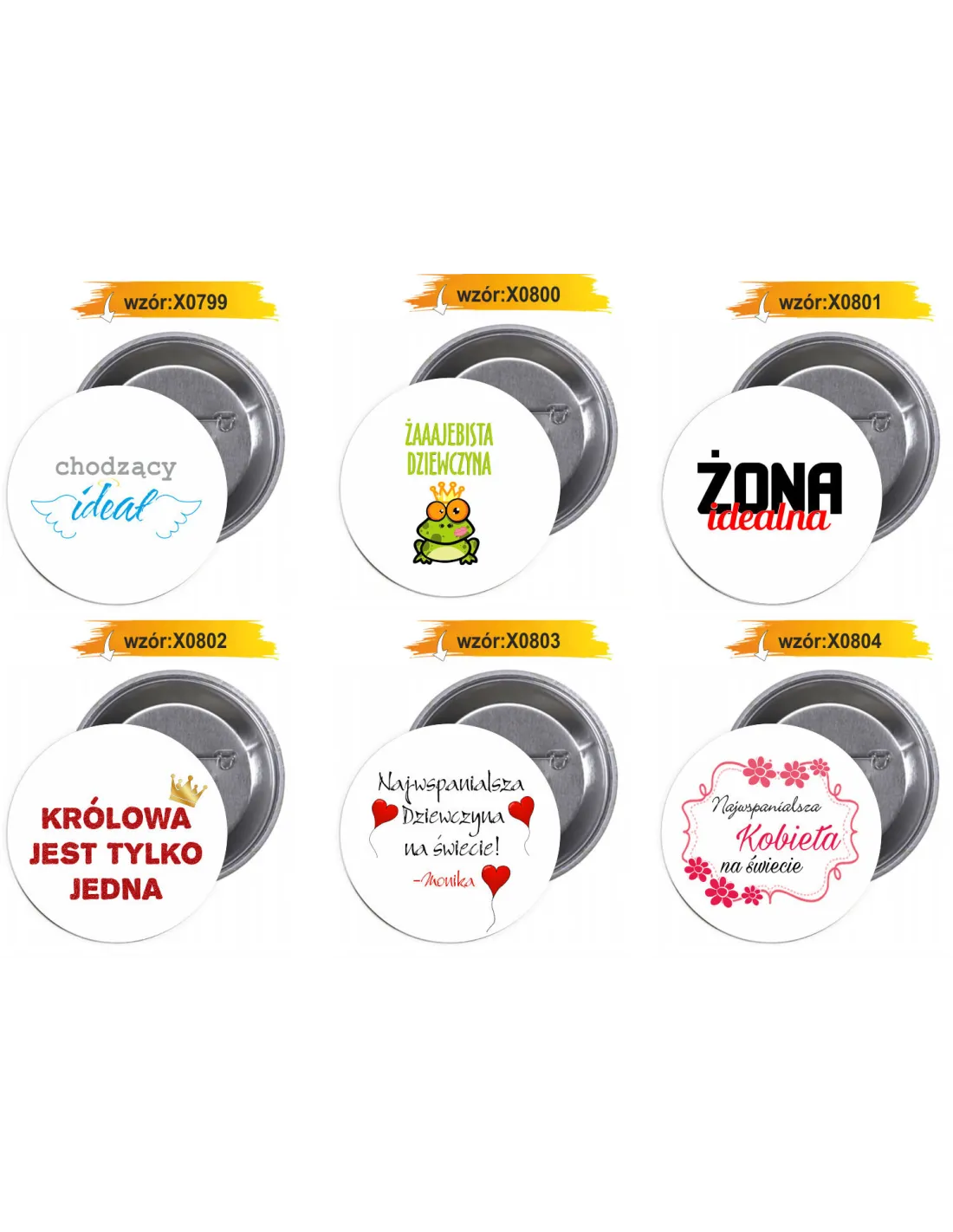 Dostępne gotowe wzory przypinek i buttonów: