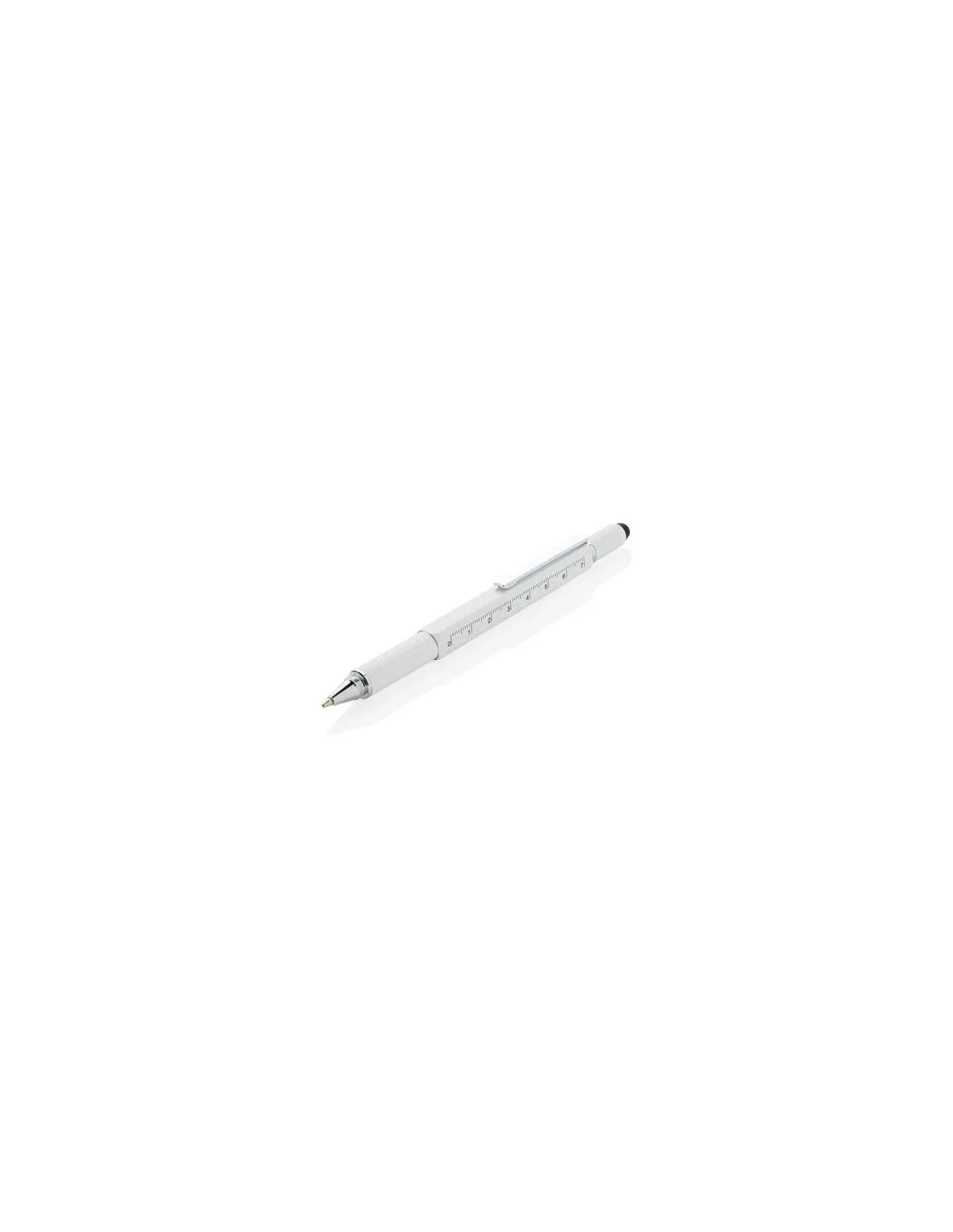 • Długopis wielofunkcyjny 5 w 1, linijka 7 cm, poziomica, śrubokręt, touch pen, wykonany z wysokiej jakości mosiądzu, aluminiowy klip, długość pisania do 400 m w 5 kolorach: biały, czarny, żółty, niebieski, srebrny.