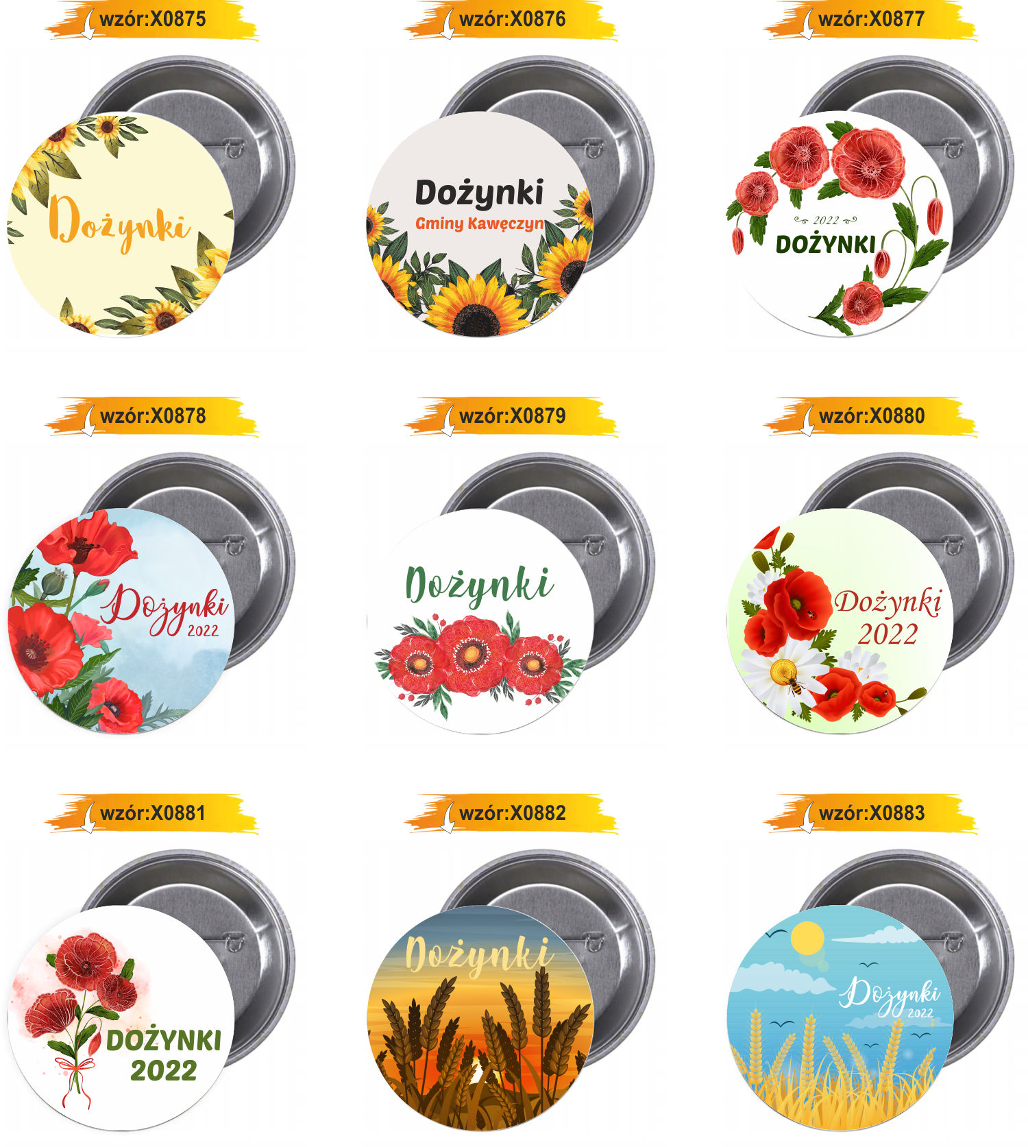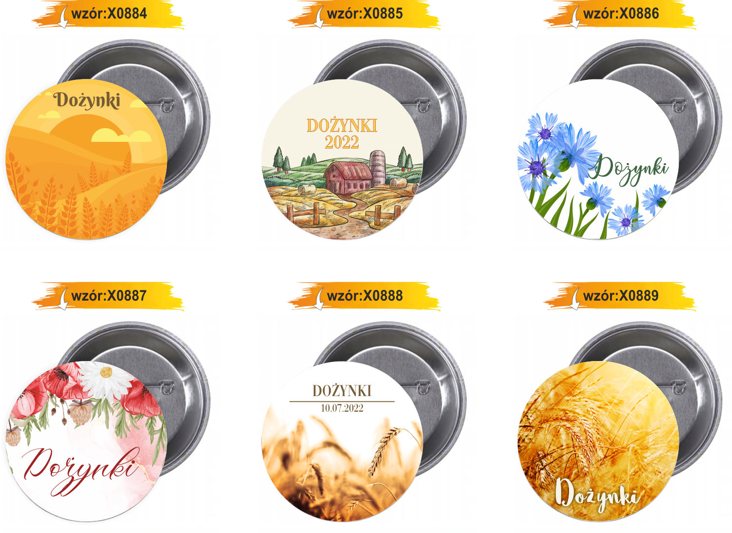 Przypinki buttony DOŻYNKI znaczki badziki z grafiką