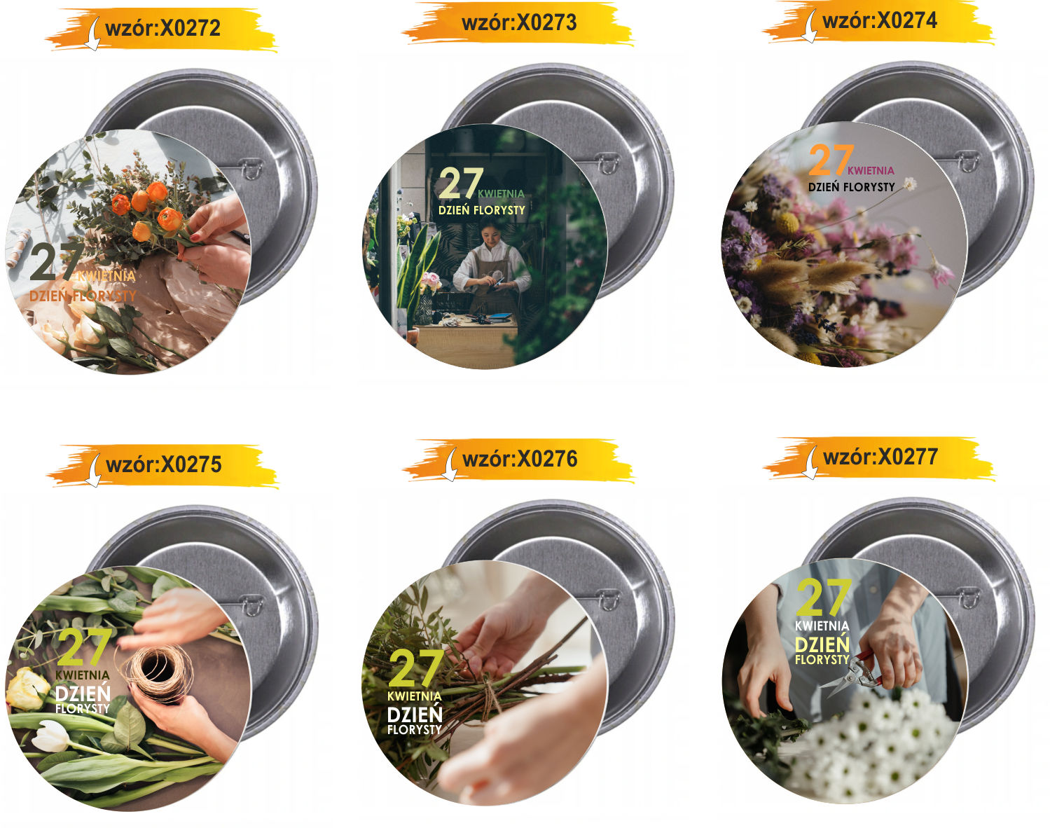 Przypinki buttony DZIEŃ FLORYSTY znaczki badziki z grafiką