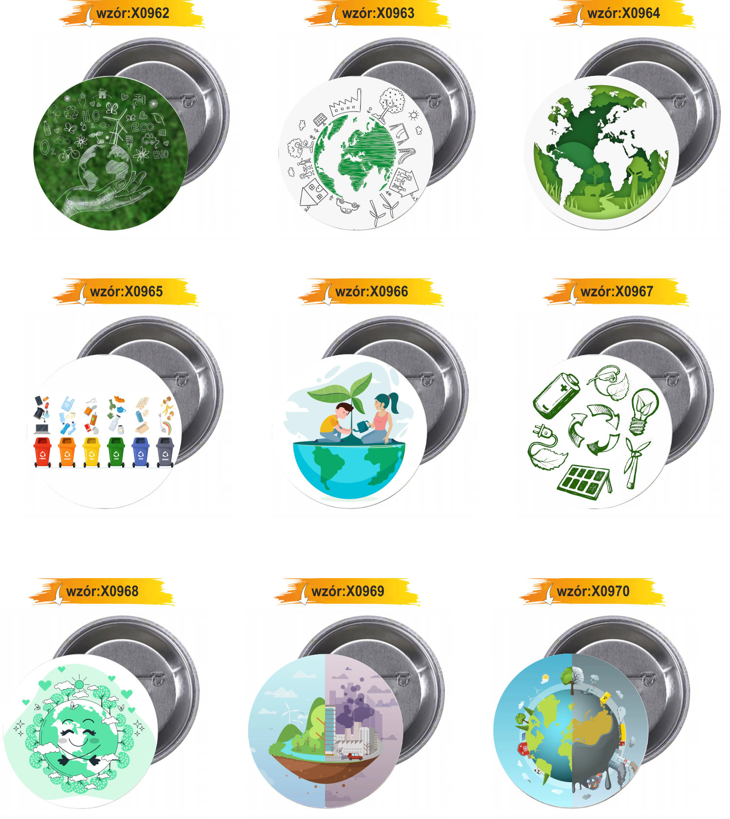 Przypinki buttony EKOLOGIA znaczki badziki z grafiką