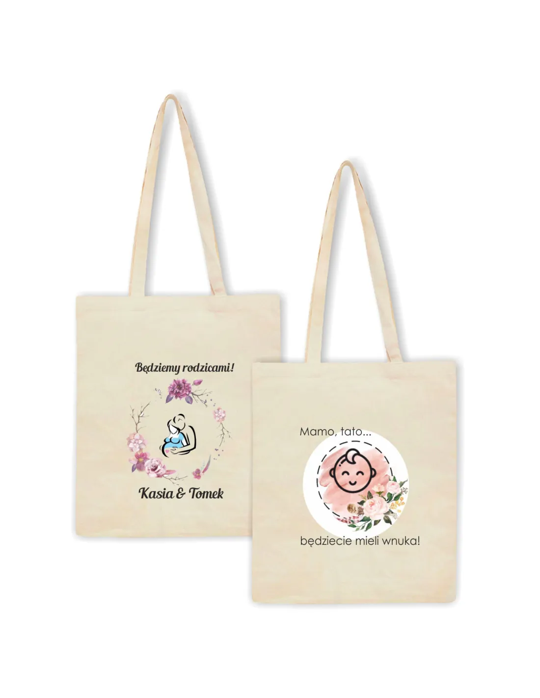 Torba z nadrukiem PREZENT napis MAMO, TATO będziemy rodzicami