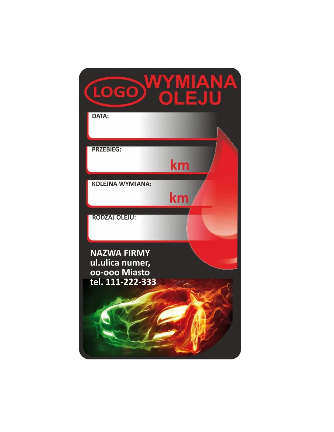 Naklejki serwisowe olej klimatyzacja wymiana LPG rozrząd