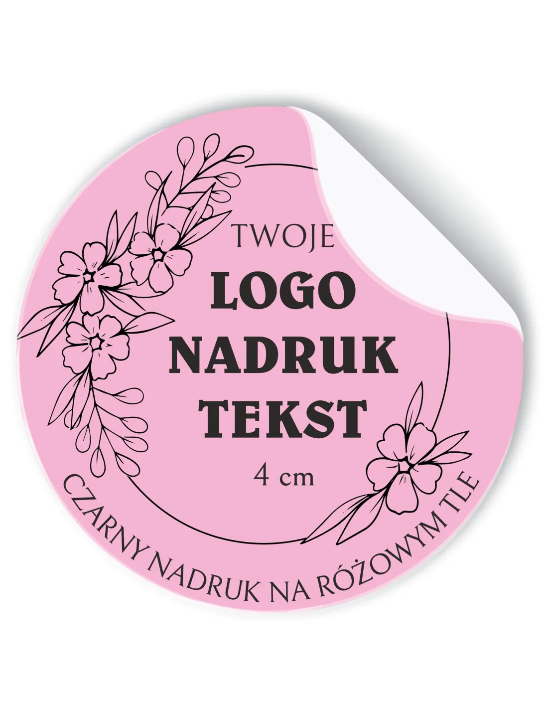 Naklejki z LOGO ETYKIETY REKLAMOWE twój nadruk grafika różowe 4cm 500szt