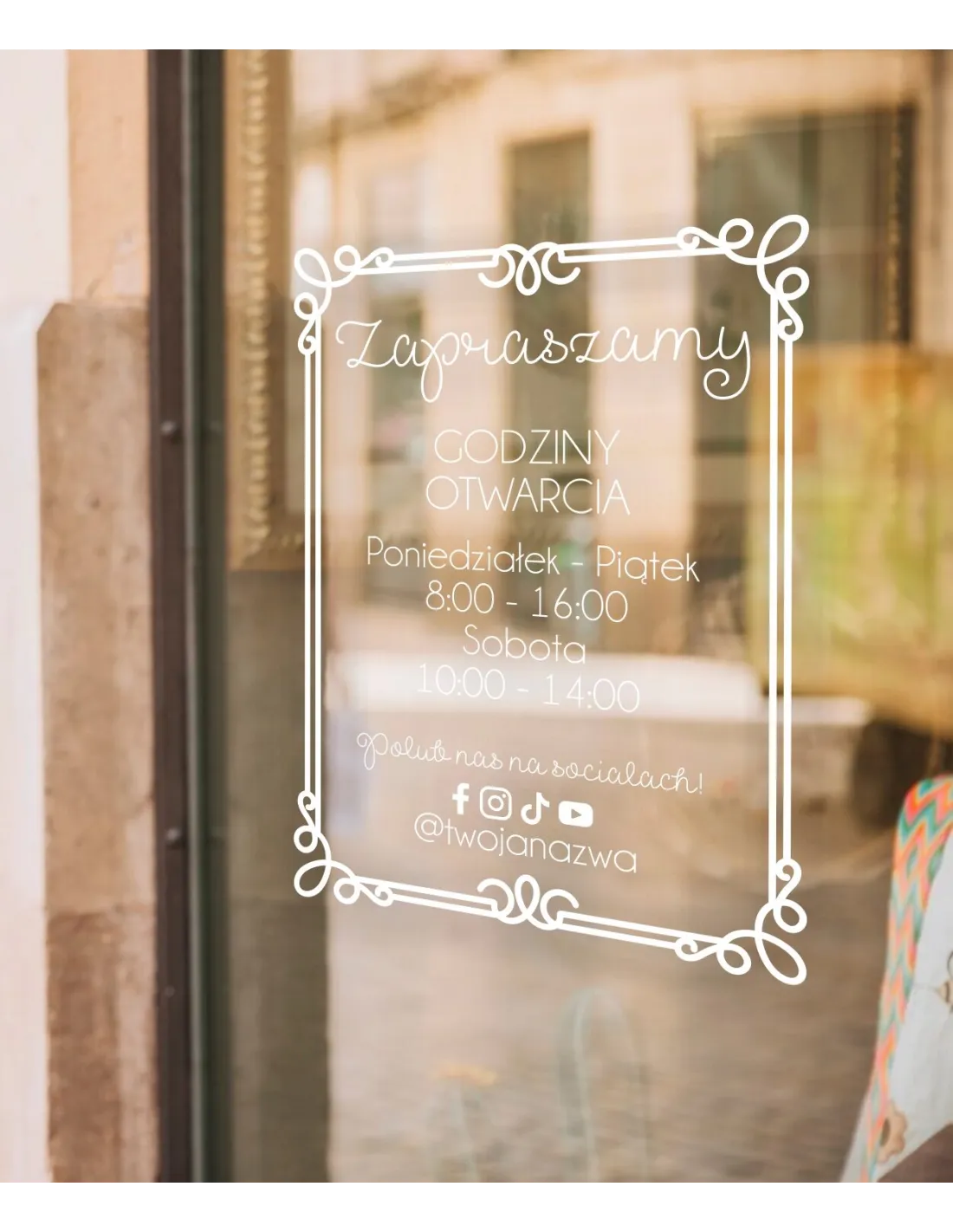 jednokolorowa Naklejka folia zapraszamy godziny otwarcia na witrynę drzwi szybę okno 45x23 cm