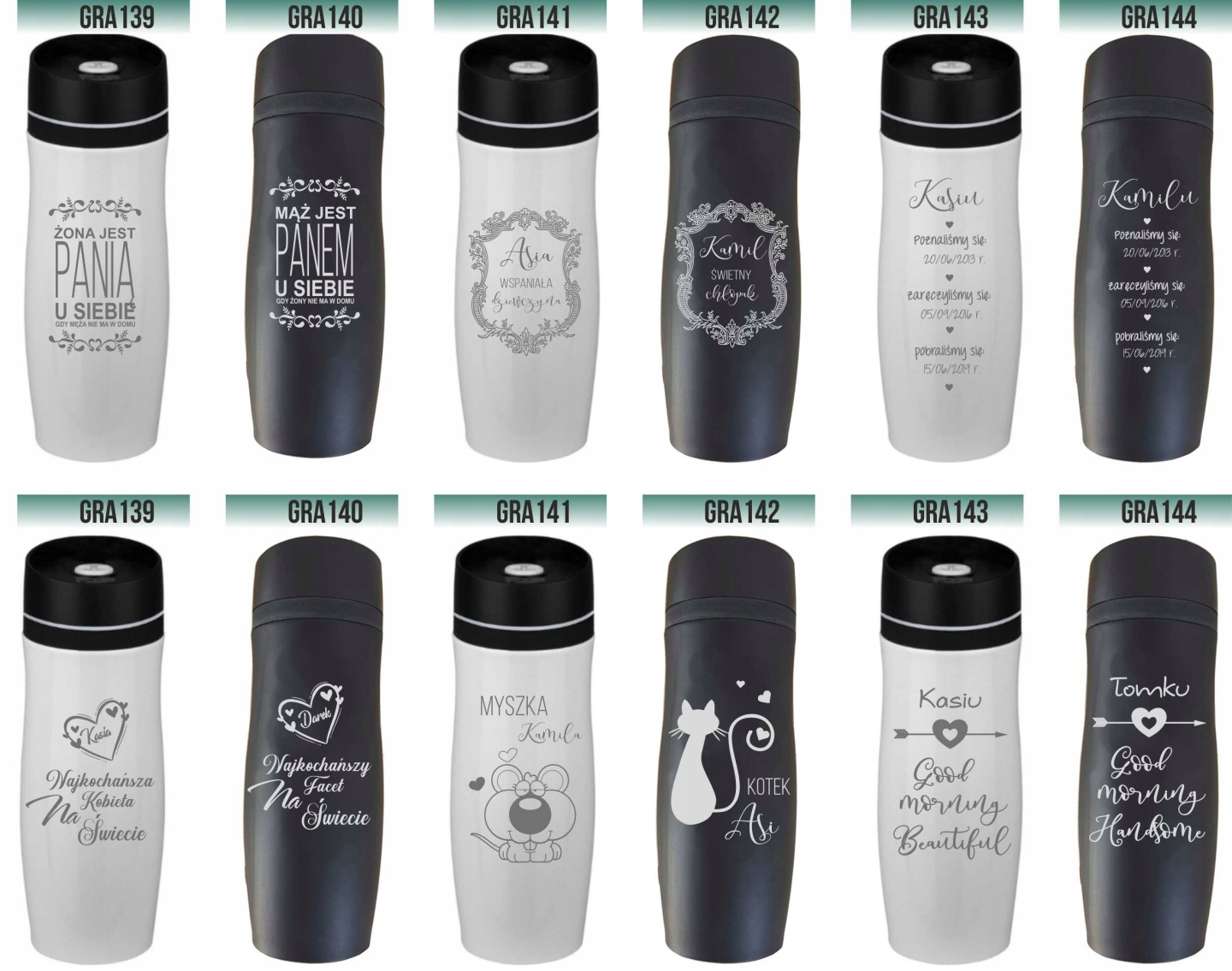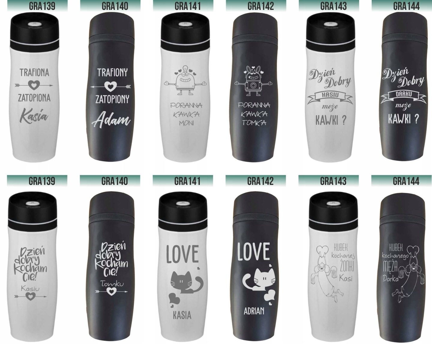 WAŻNA INFORMACJA: nie barwimy grawerów, grawer na kubku jest w kolorze stali.
