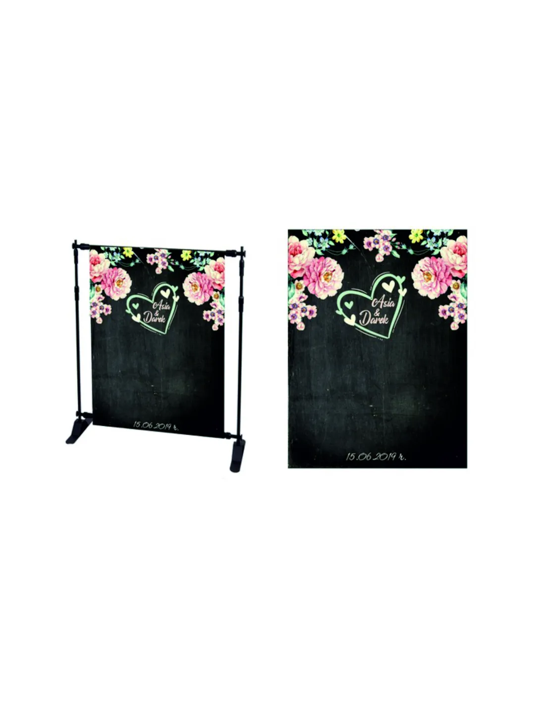 Na ściance fotograficznej istnieje możliwość zmiany napisów, grafik i kolorów. Po zakupie prosimy przesłać wytyczne dotyczące projektu.