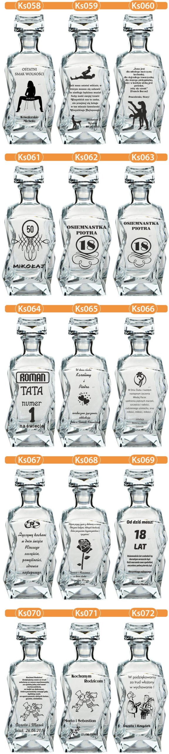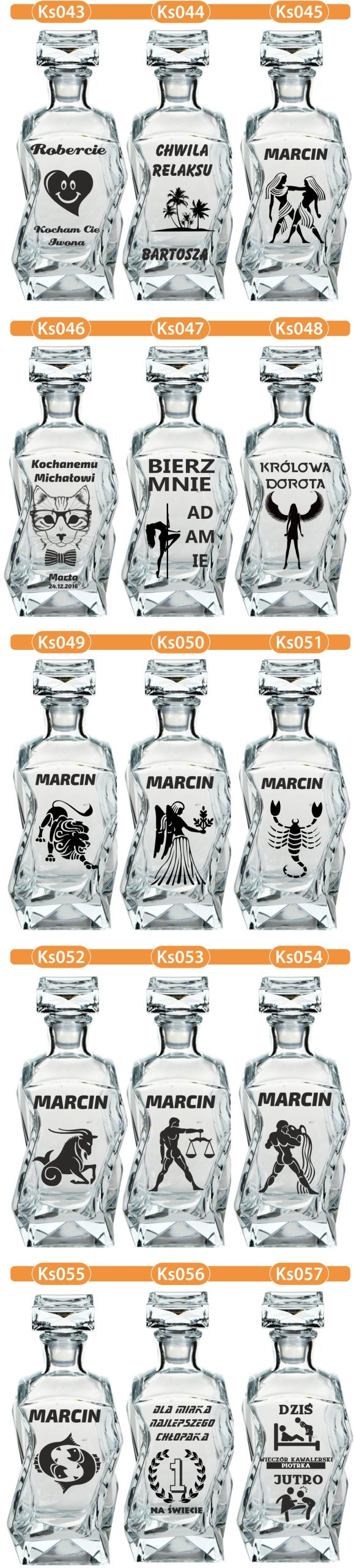 Zestaw 1 karafka + 6 dowolnych szklanek (mogą być każda w innym wzorze).Poniżej dostępne wzory do wyboru.