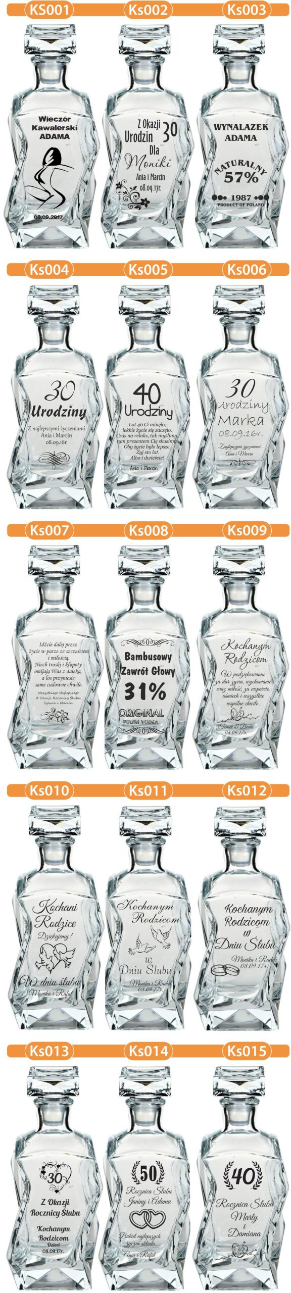 Zestaw 1 karafka + 6 dowolnych szklanek (mogą być każda w innym wzorze).Poniżej dostępne wzory do wyboru.