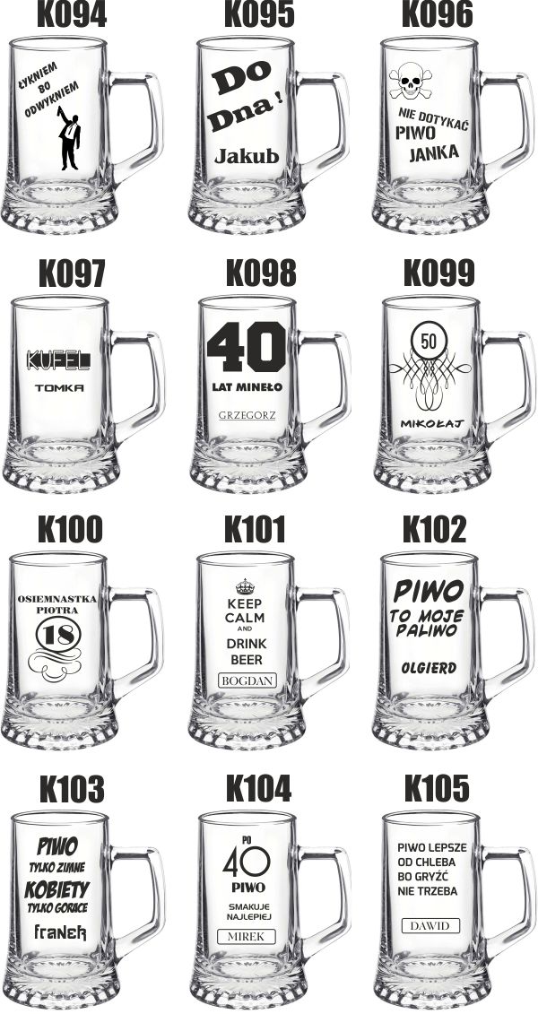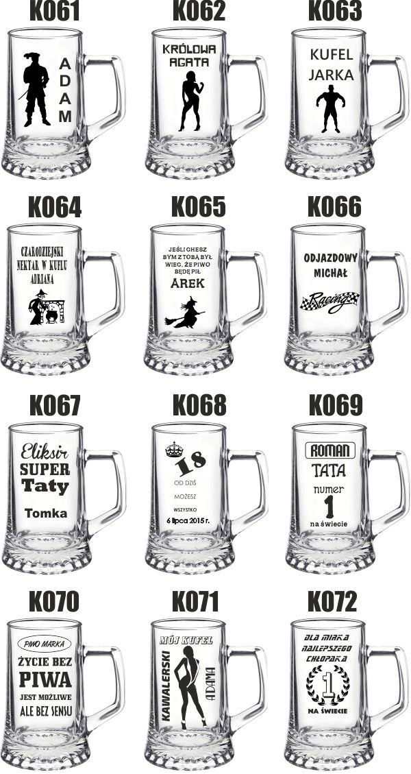 Poniżej dostępne wzory kufli do wyboru