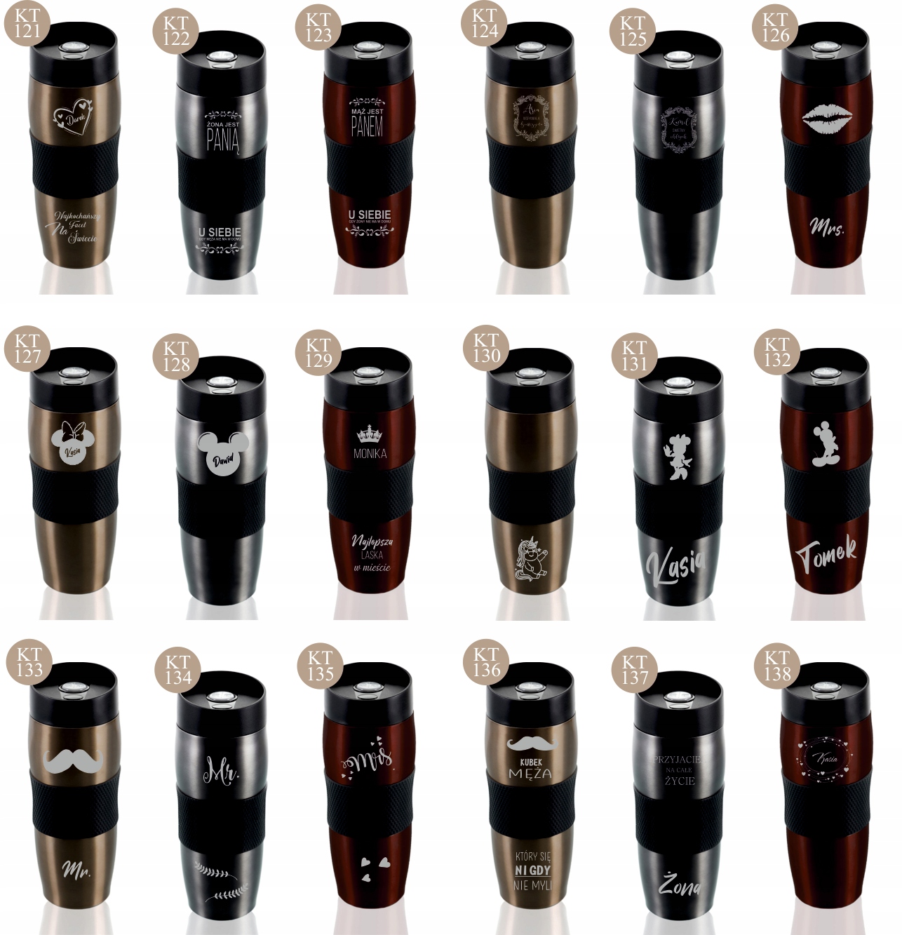 WAŻNA INFORMACJA: nie barwimy grawerów, grawer na kubku jest w kolorze stali.