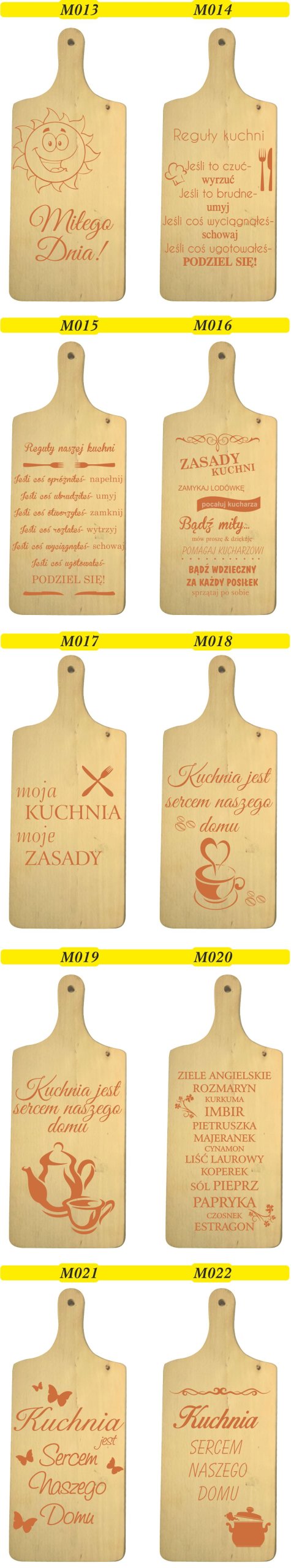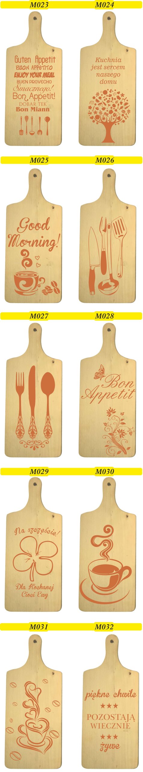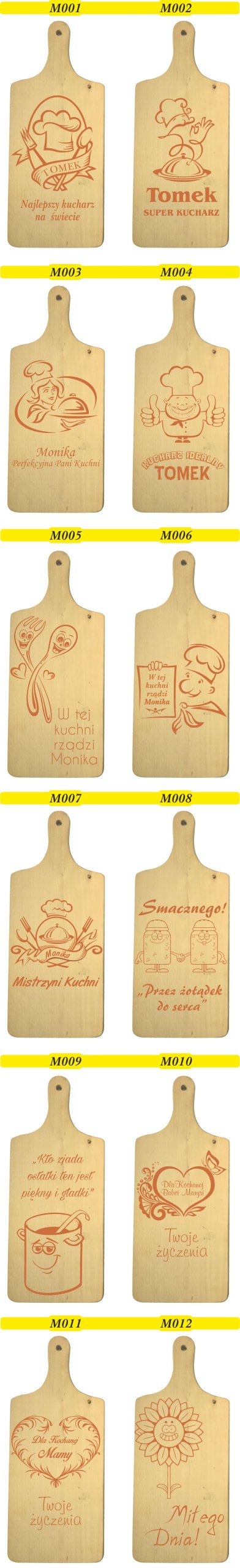 Na desce można umieścić własny projekt wysłany przez klienta, który należy dostarczyć w Corel Draw. Po zakupie należy przesłać numer wzoru, który zostanie umieszczony na desce oraz dane do wpisania np. imion lub nazwy okazji.