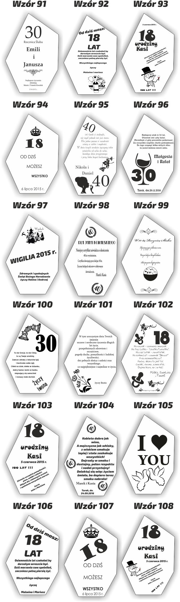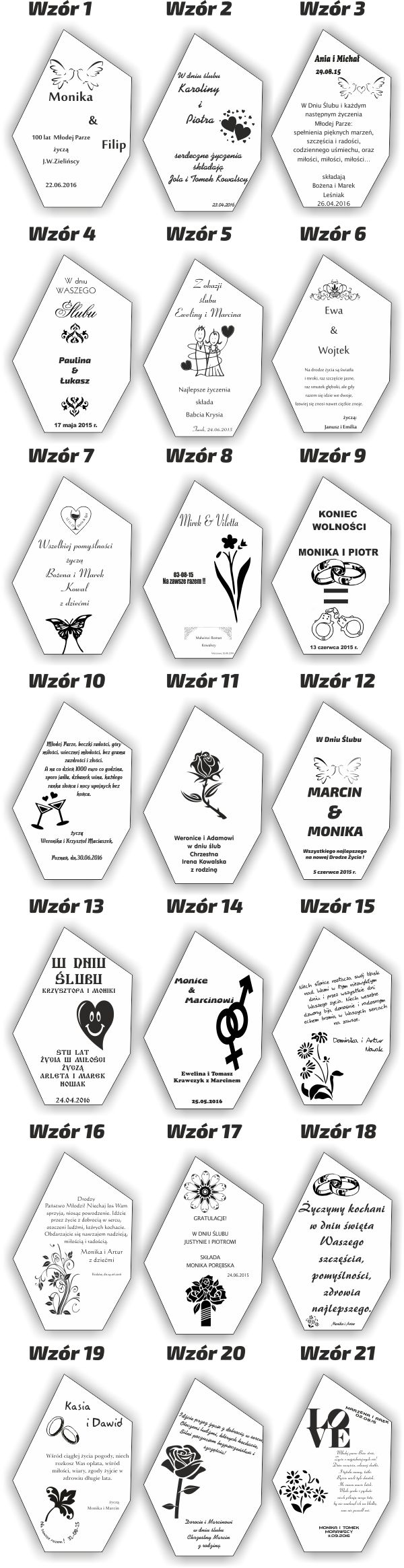 Po zakupie prosimy o informacje, który wzór graweru ma się znaleźć na statuetce.