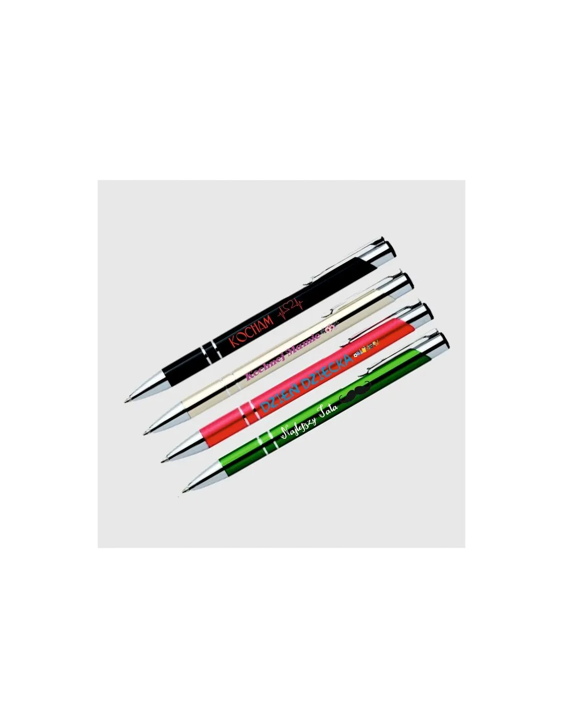 • na długopisach można umieścić dowolny napis, logo, znak