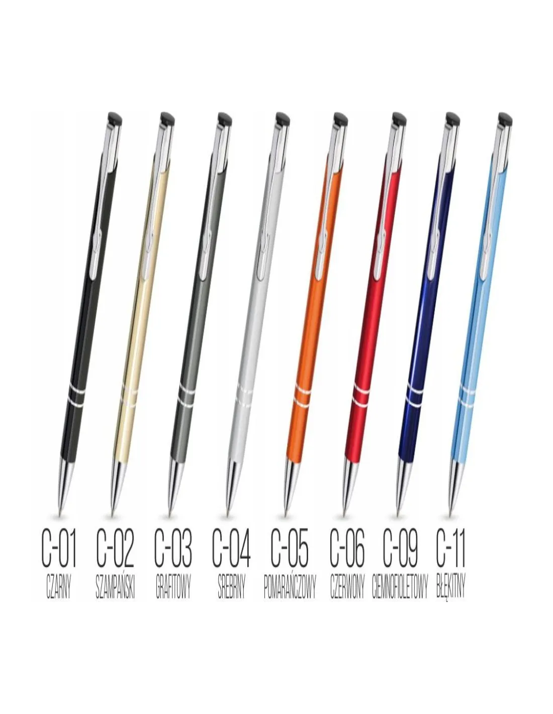 Dostępne kolory długopisów:
