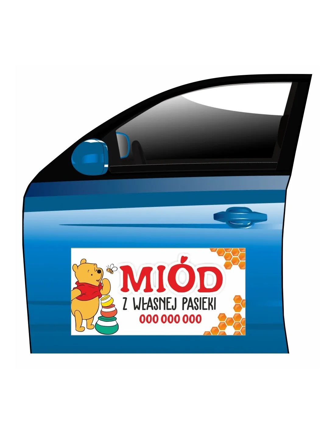 Magnes na samochód reklama magnetyczna miód z własnej pasieki