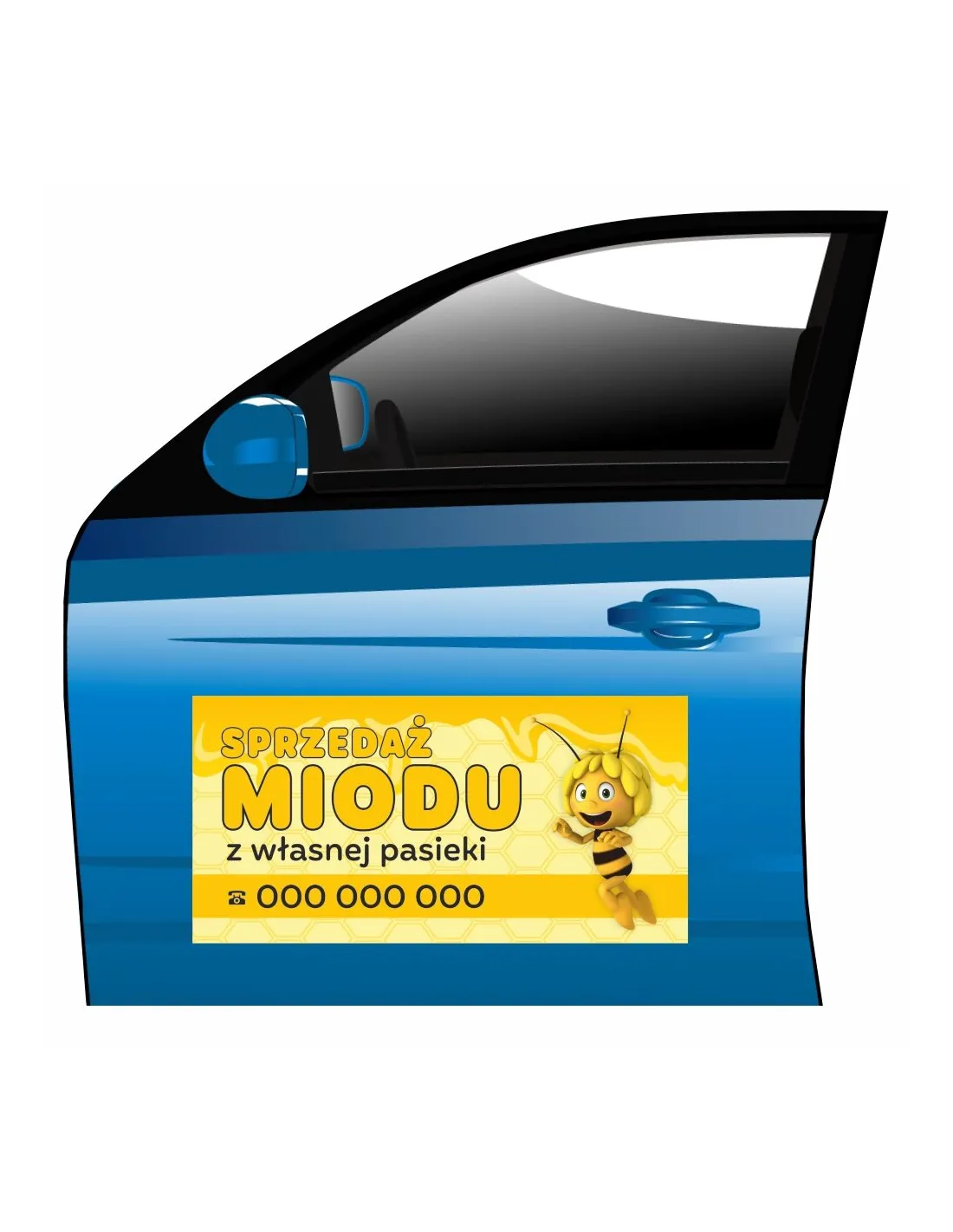 Magnes na samochód reklama magnetyczna sprzedaż miodu z własnej pasieki