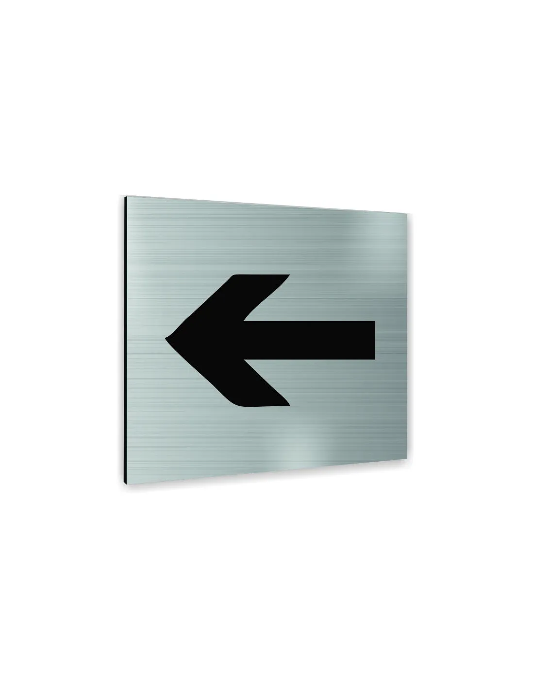 Tabliczka SREBRNA STRZAŁKA TEKST DOWOLNY TEKST NAPIS Tablica nierdzewna PIKTOGRAM ALUMINIUM