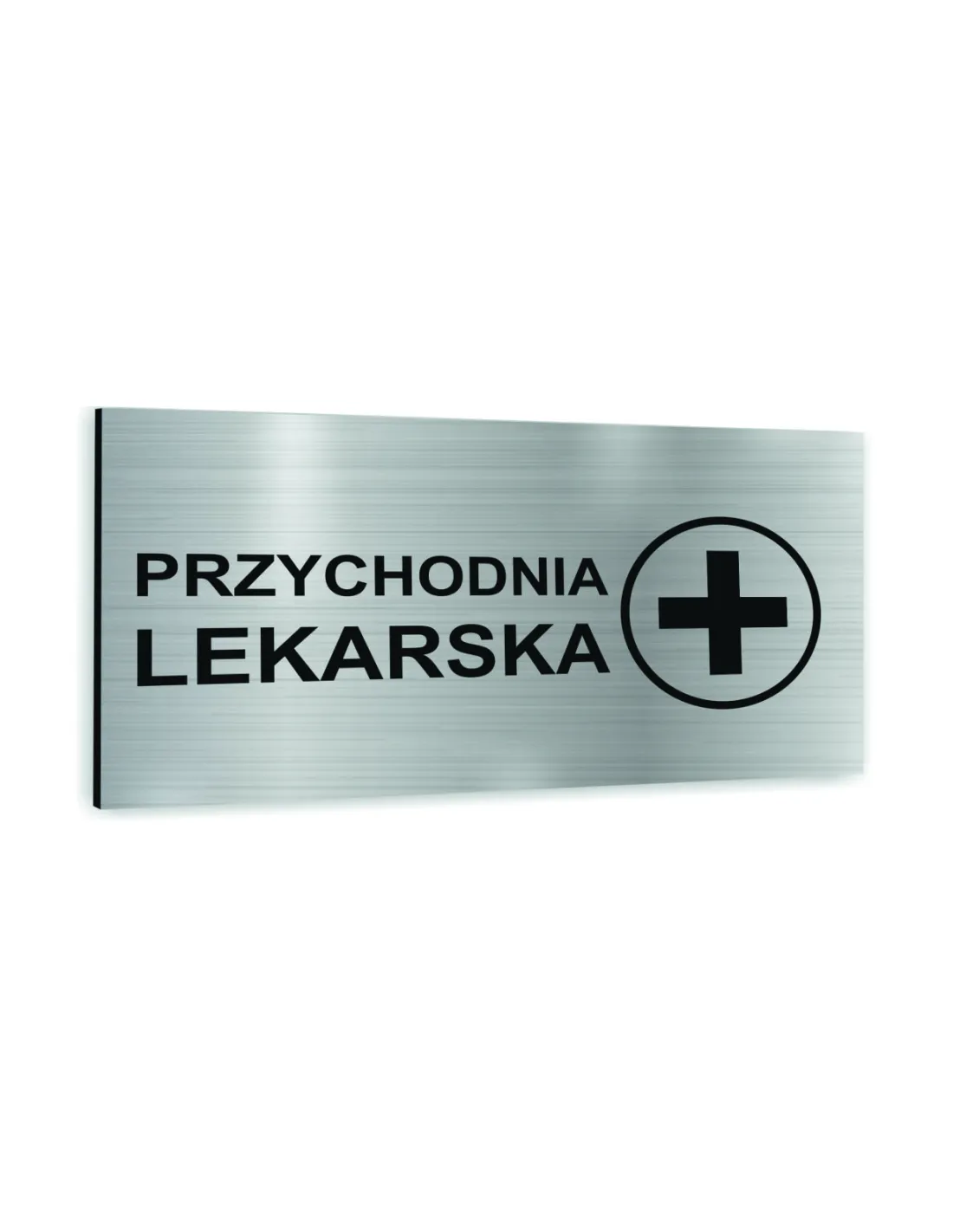 Tabliczka SREBRNA aluminiowa PRZYCHODNIA LEKARSKA NADRUK UV Tablica informacyjna