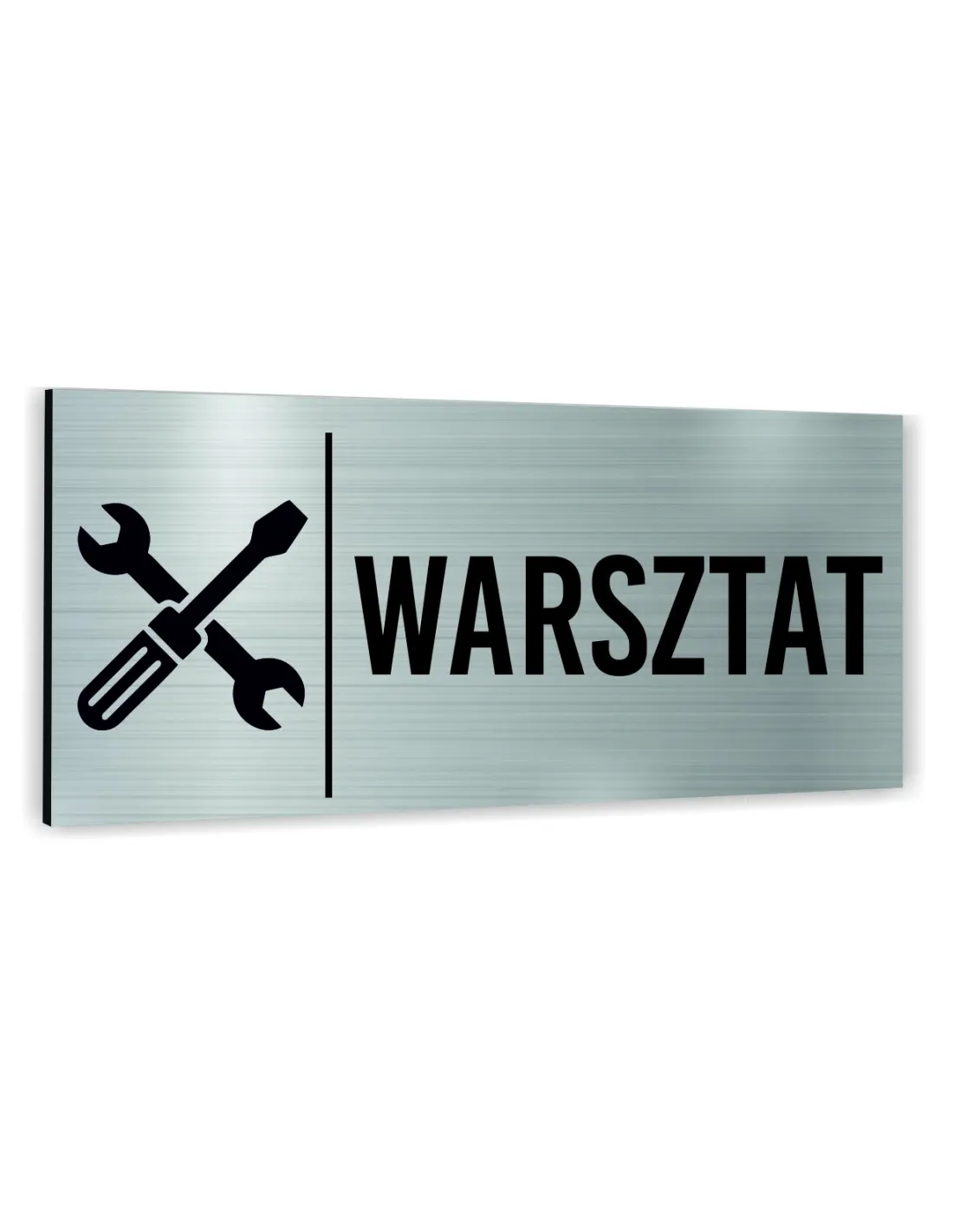Tabliczka DOWOLNY TEKST NAPIS WARSZTAT Tablica nierdzewna informacyjna SREBRNA