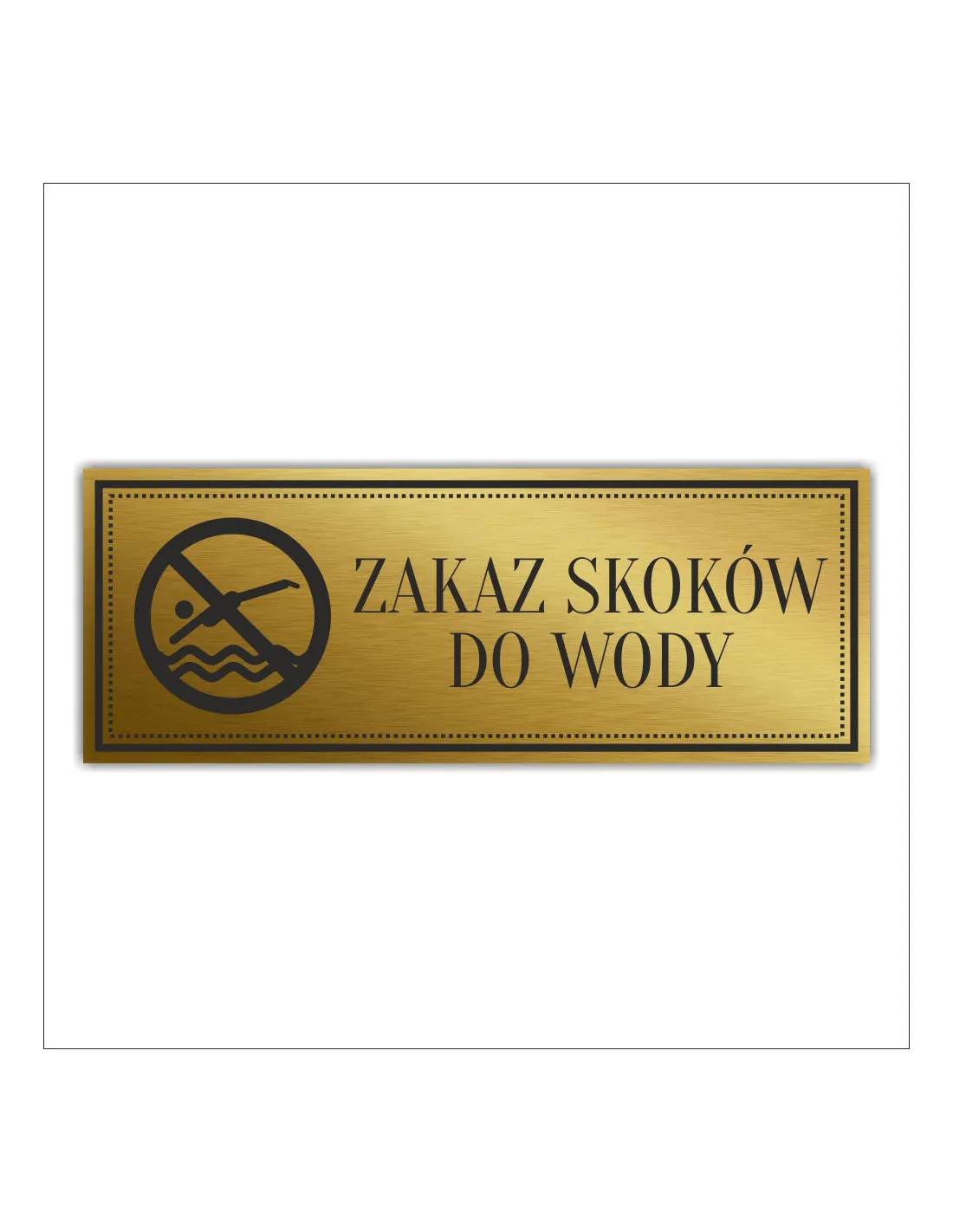Tabliczka Złota Srebrna na drzwi ZAKAZ SKOKÓW DO WODY piktogram nierdzewna grawer