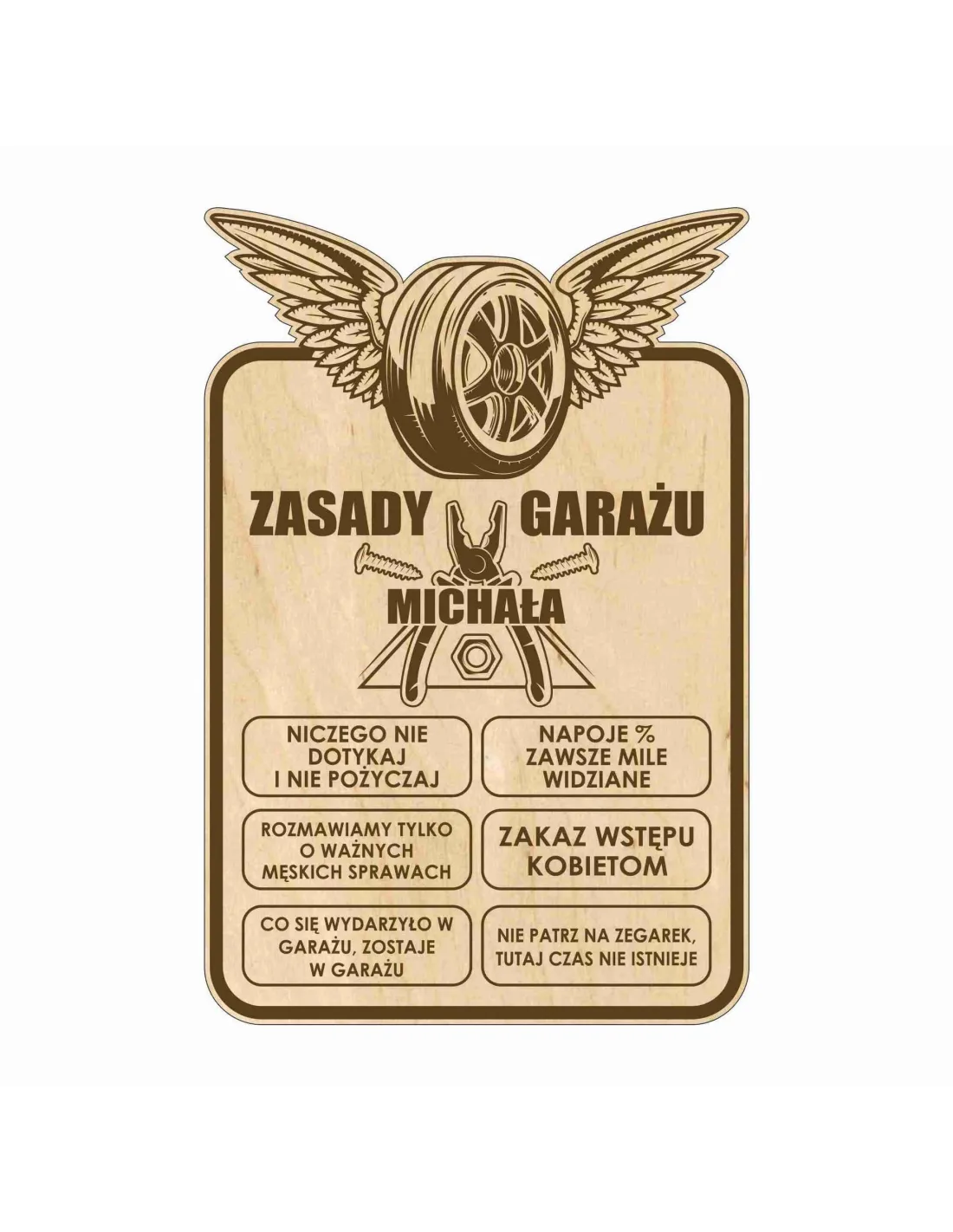 TABLICA ZASADY GARAŻU drewniana zabawny prezent na urodziny GRAWER twój napis imię