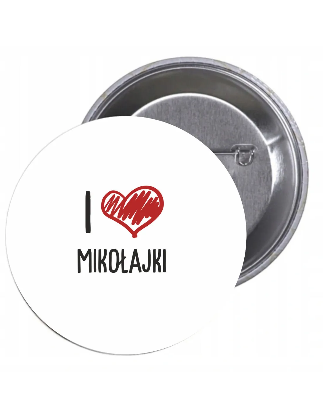 Przypinki buttony I LOVE MIKOŁAJKI znaczki badziki z grafiką