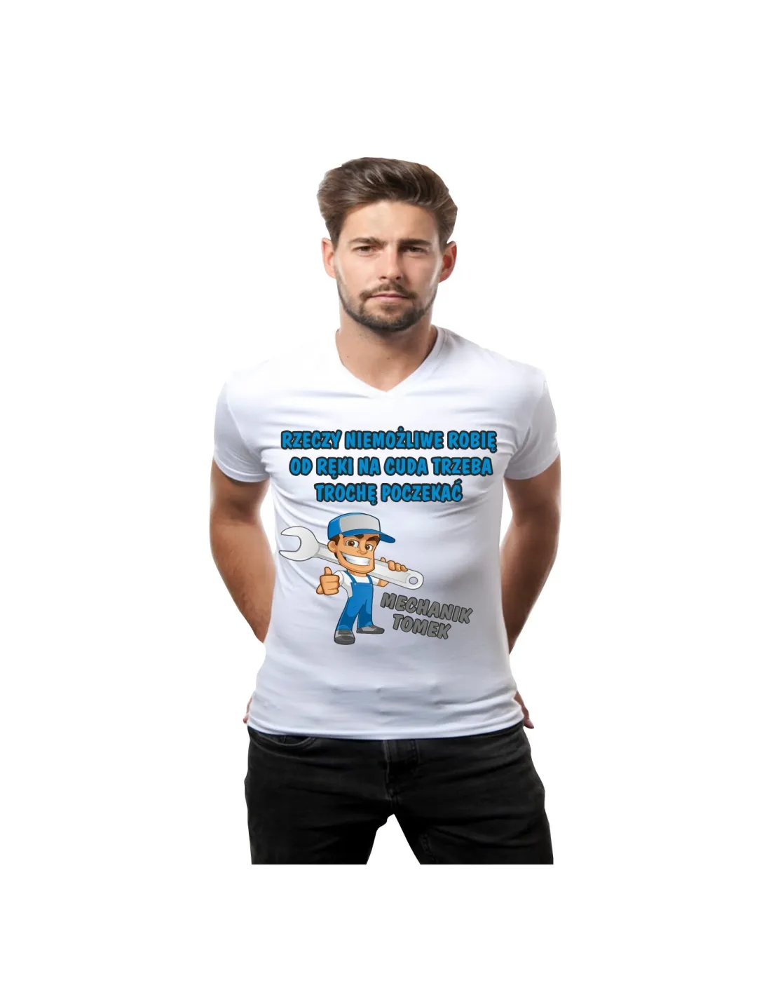 Koszulka z nadrukiem rzeczy niemożliwe robię od ręki na cuda trzeba trochę poczekać mechanik