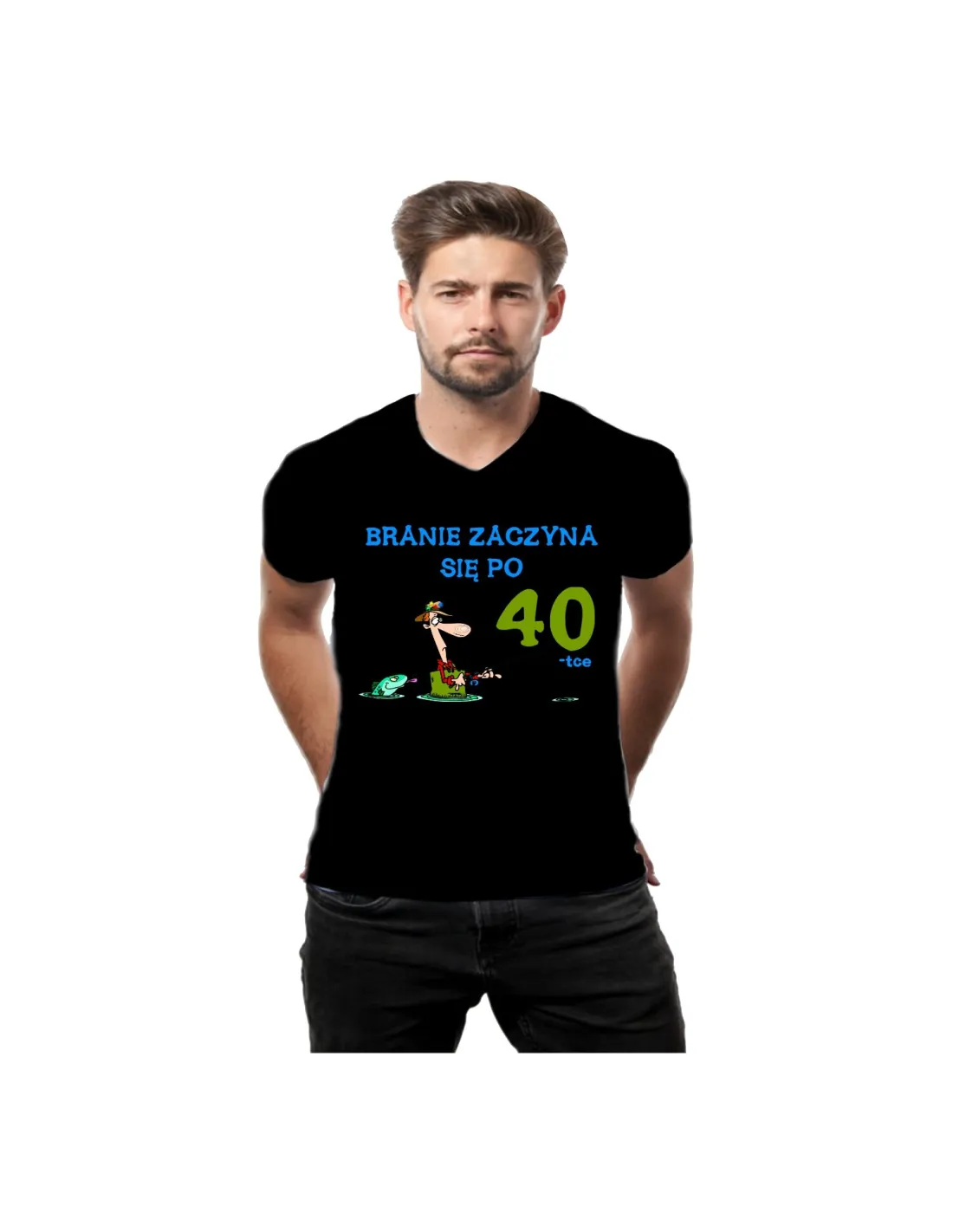 Koszulka prezent na urodziny z nadrukiem branie zaczyna się po 40 30 50