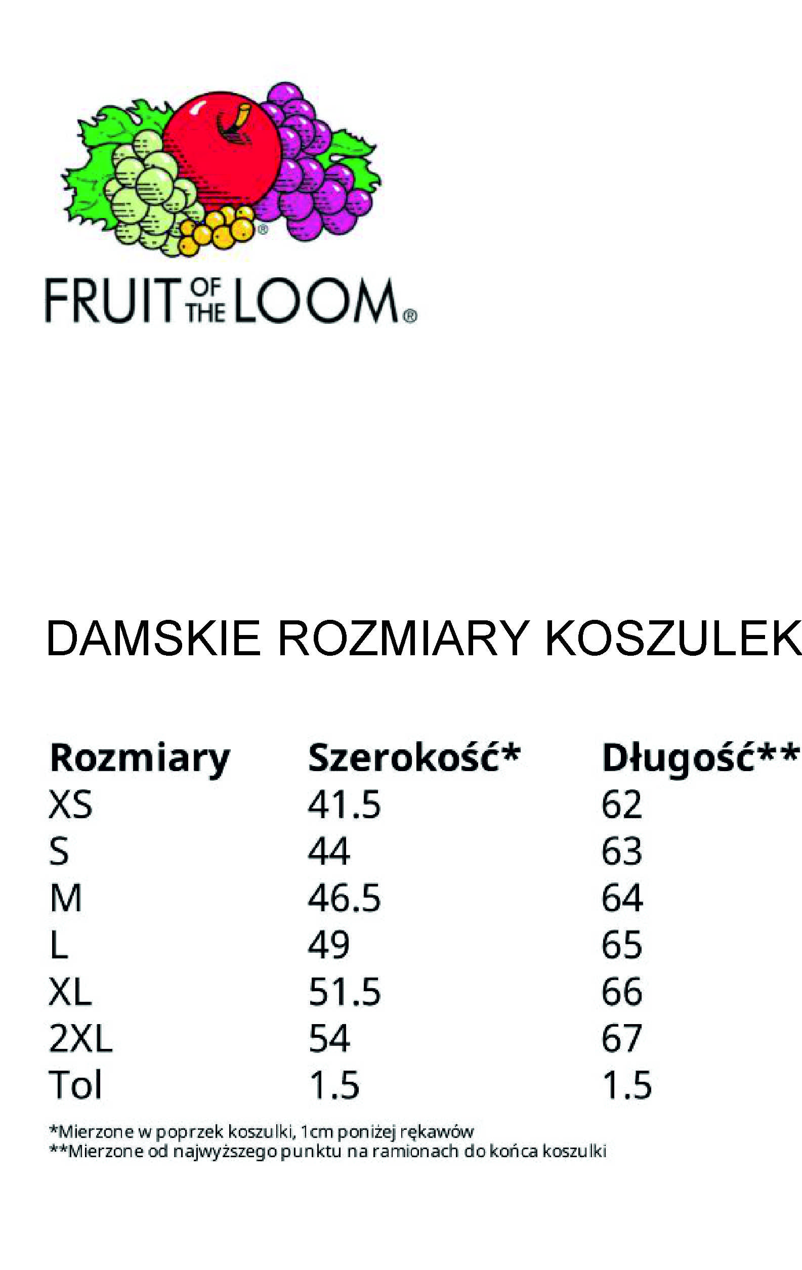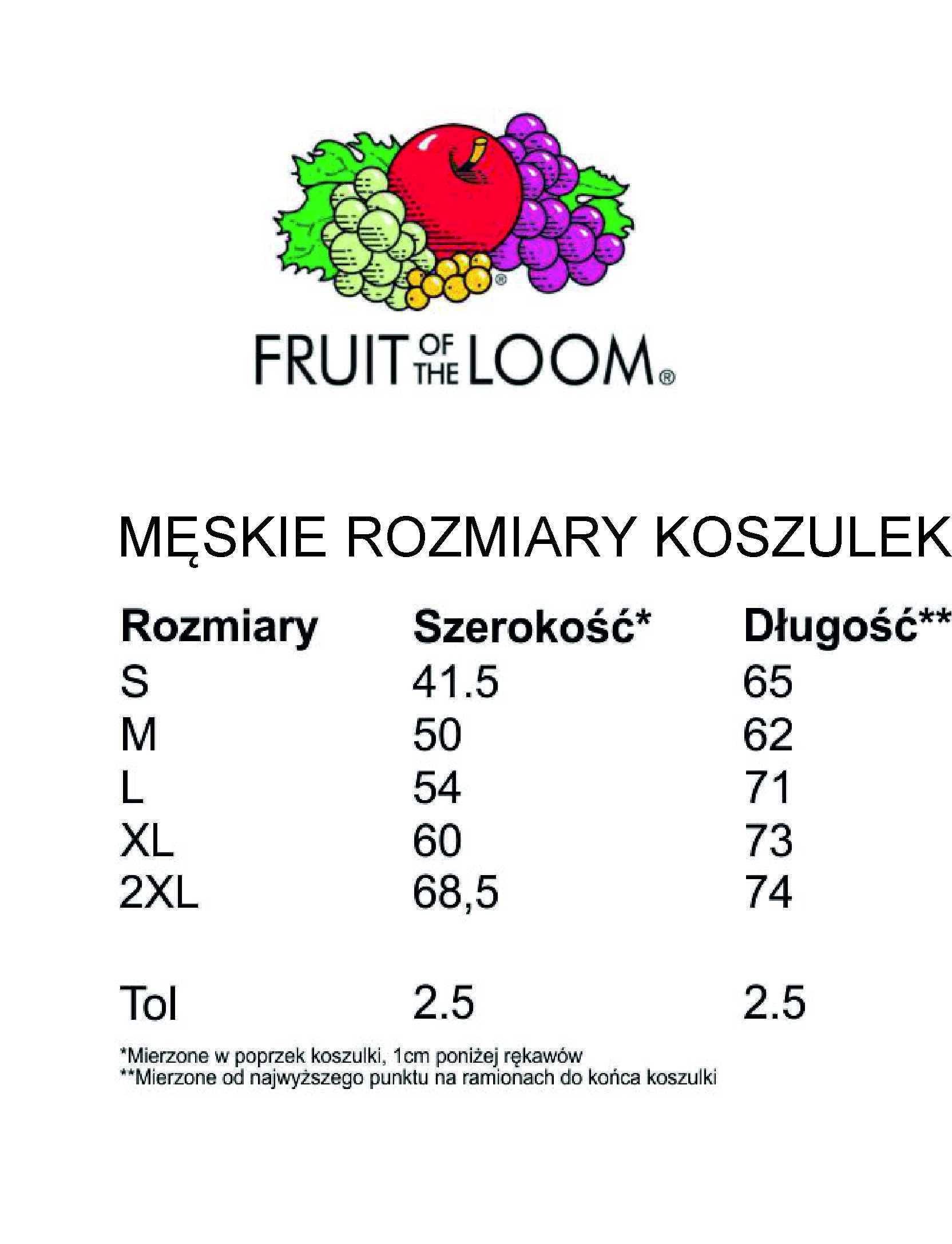 • bawełniane koszulki 145g, firmy Fruit of the Loom