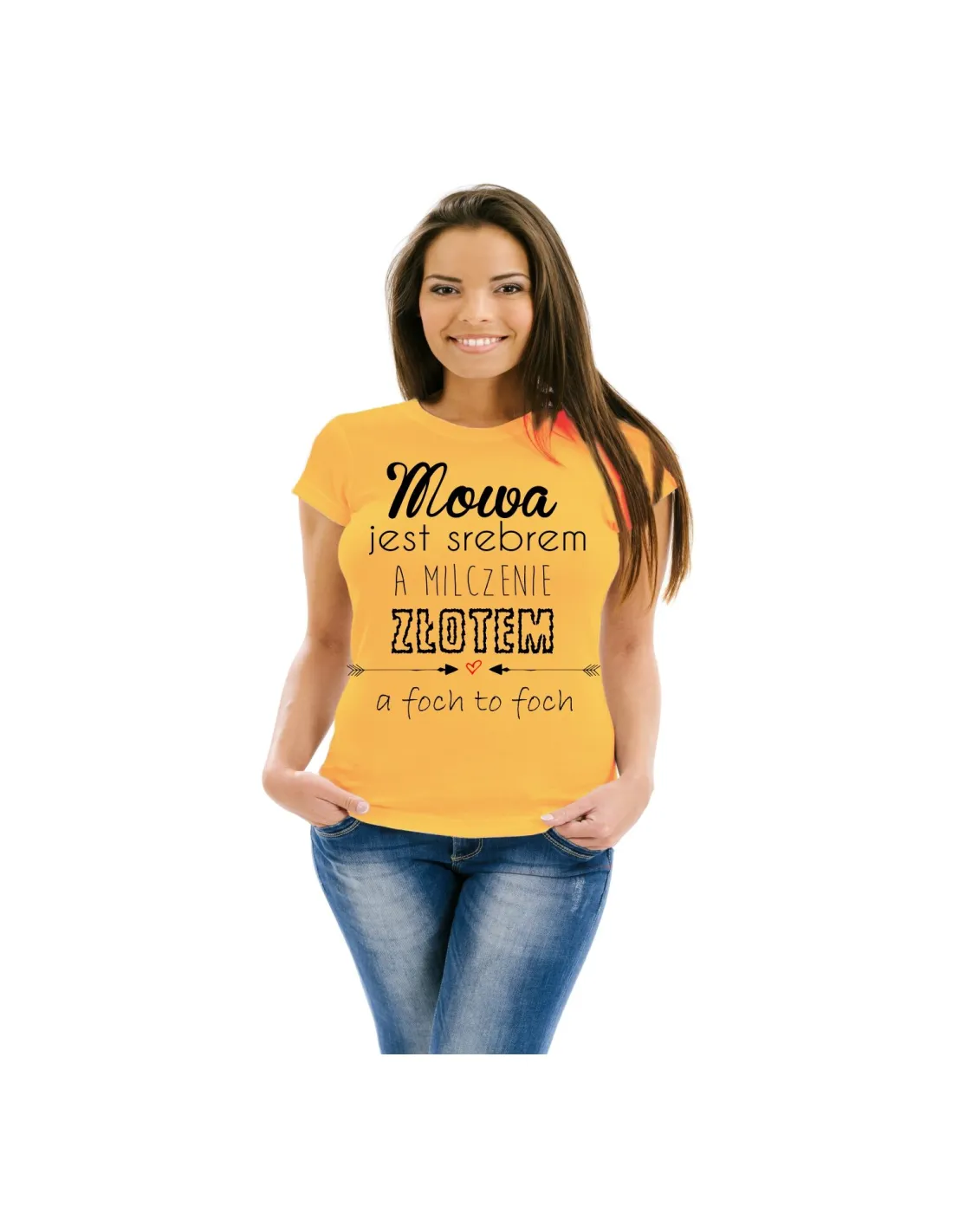 Koszulka z nadrukiem mowa jest srebrem a milczenie złotem a foch to foch