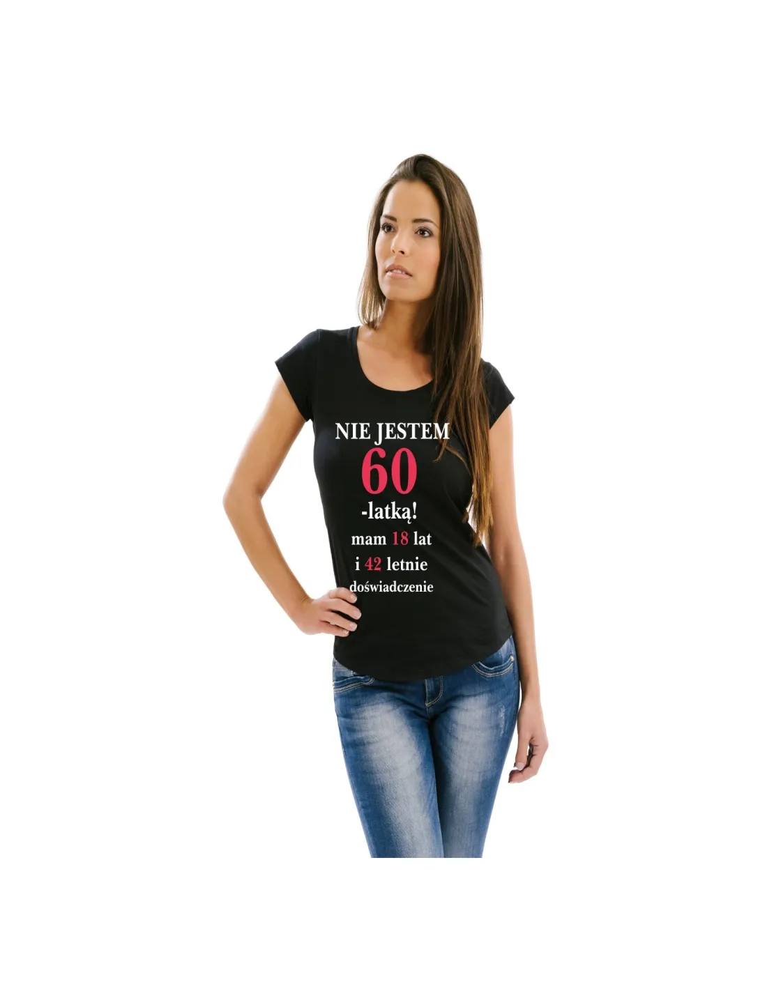 Koszulka z nadrukiem nie jestem 60-latką mam 18 lat i 42 letnie doświadczenie