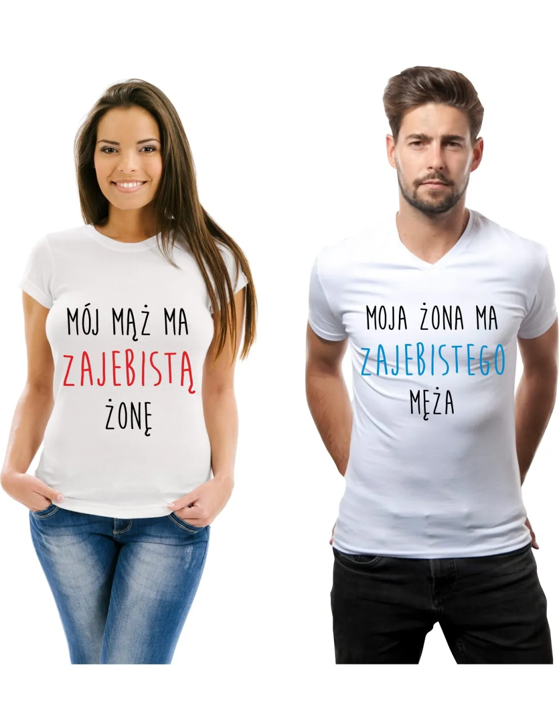 Koszulka z nadrukiem zestaw dla par Mój mąż ma zajebistą żonę Moja żona ma zajebistego męża