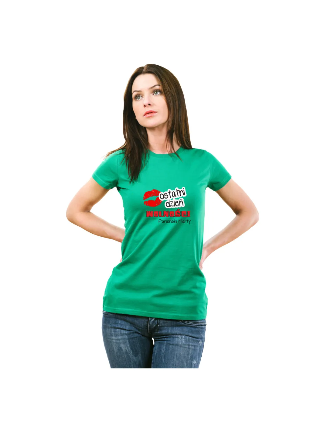 Koszulka z imieniem napis OSTATNI DZIEŃ WOLNOŚCI Dekolt okrągły