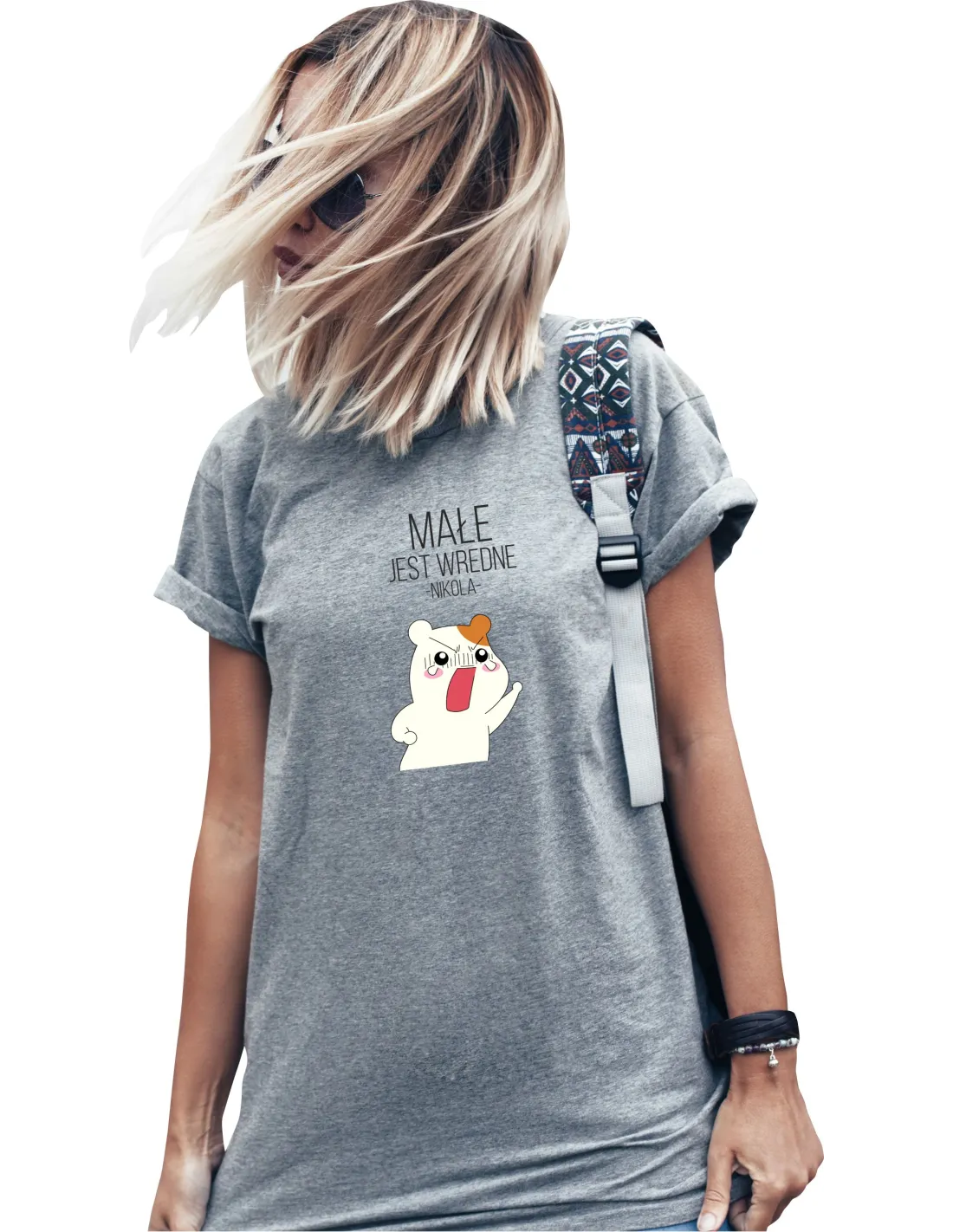 Koszulka z imieniem napisem MAŁE JEST WREDNE Dekolt okrągły