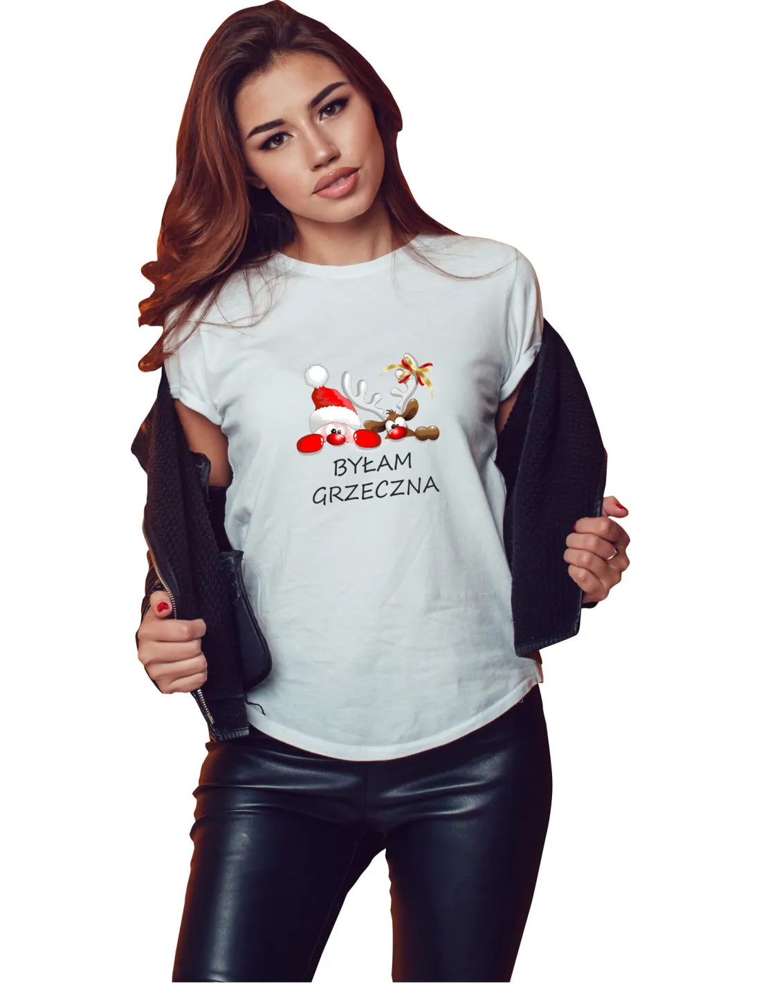 Koszulka z nadrukiem PREZENT BYŁAM GRZECZNA Dekolt okrągły