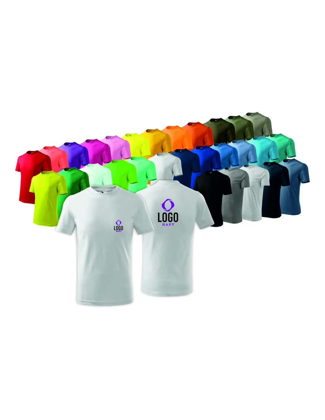 Dostępne kolory koszulek : biały, czarny, granatowy, jasnoszary, żółty, czerwony, chabrowy, khaki, pomarańczowy, ciemnoszary, lazurowy, błękitny, zielony, szmaragdowy, jasny khaki, różowy, turkusowy, denim, limonkowy, malinowy, fioletowy, military, ciemnoniebieski, jasny zielony, miętowy, cytrynowy, kolarowy, mandarynkowy, frost