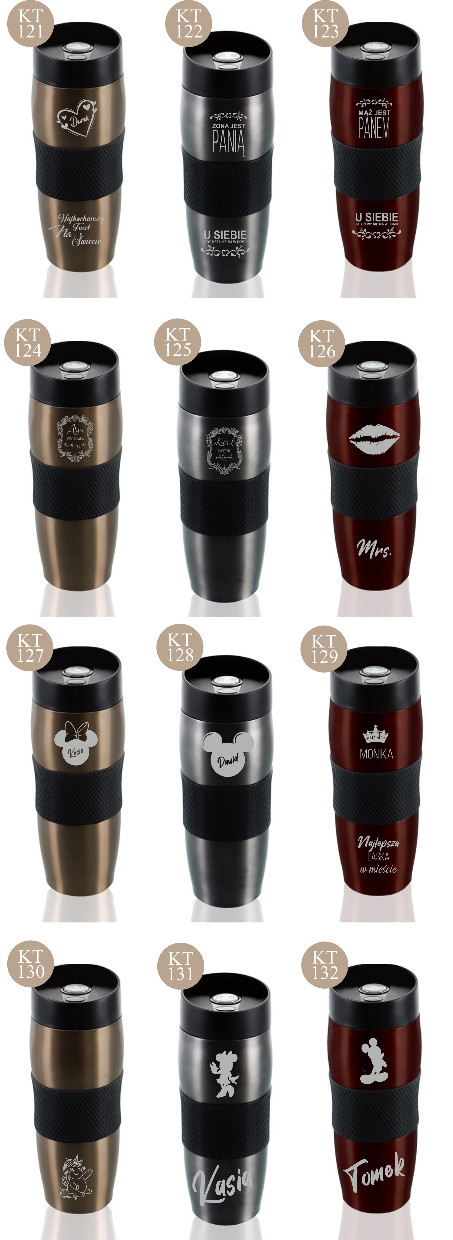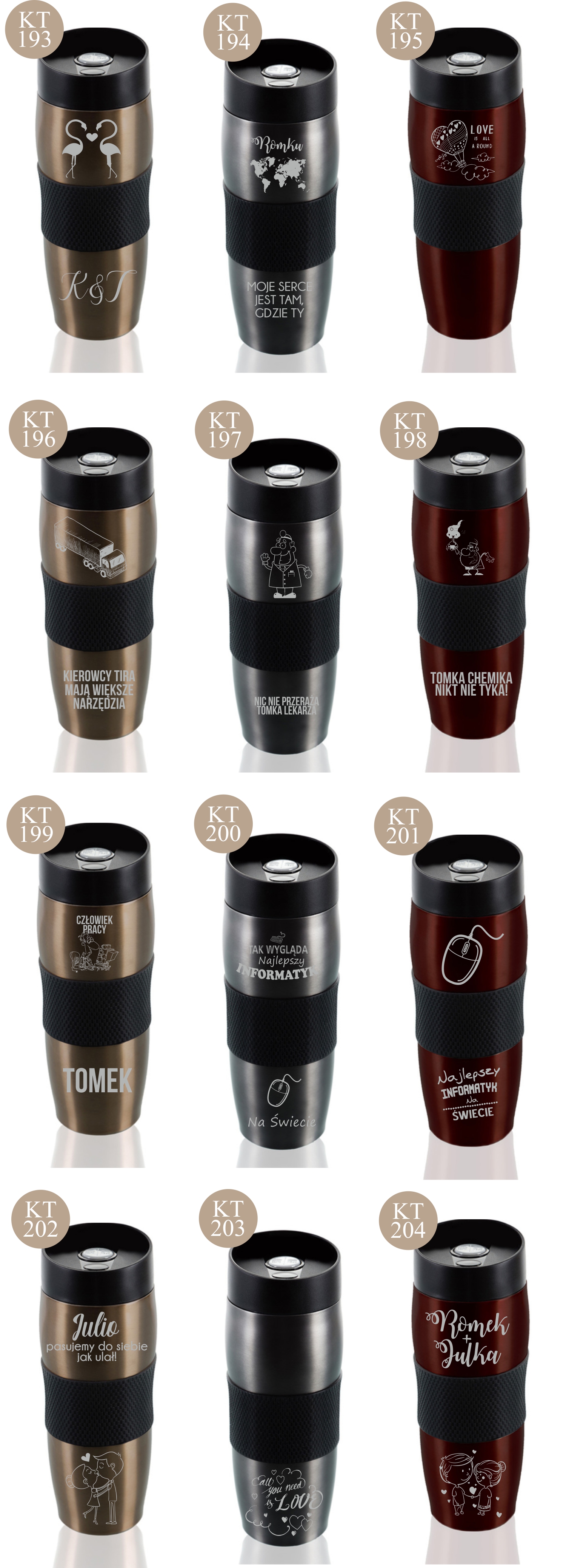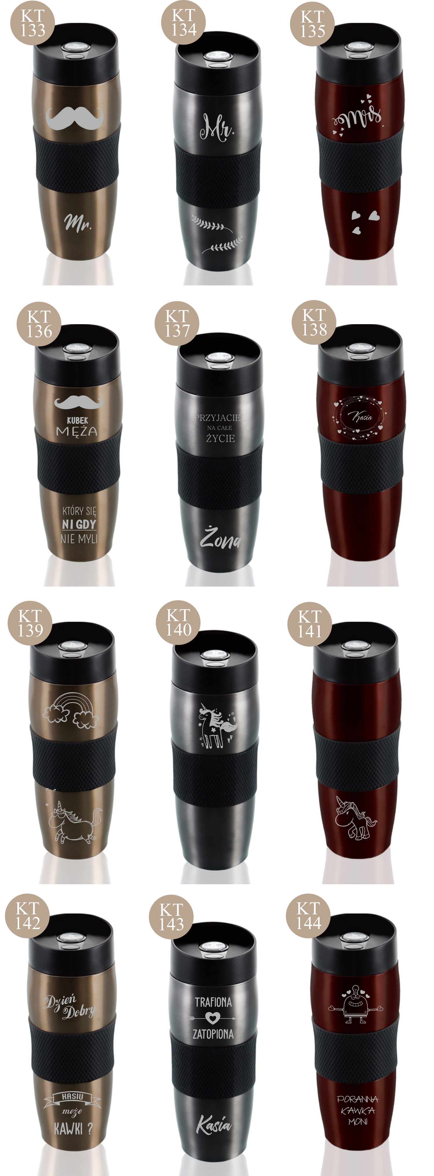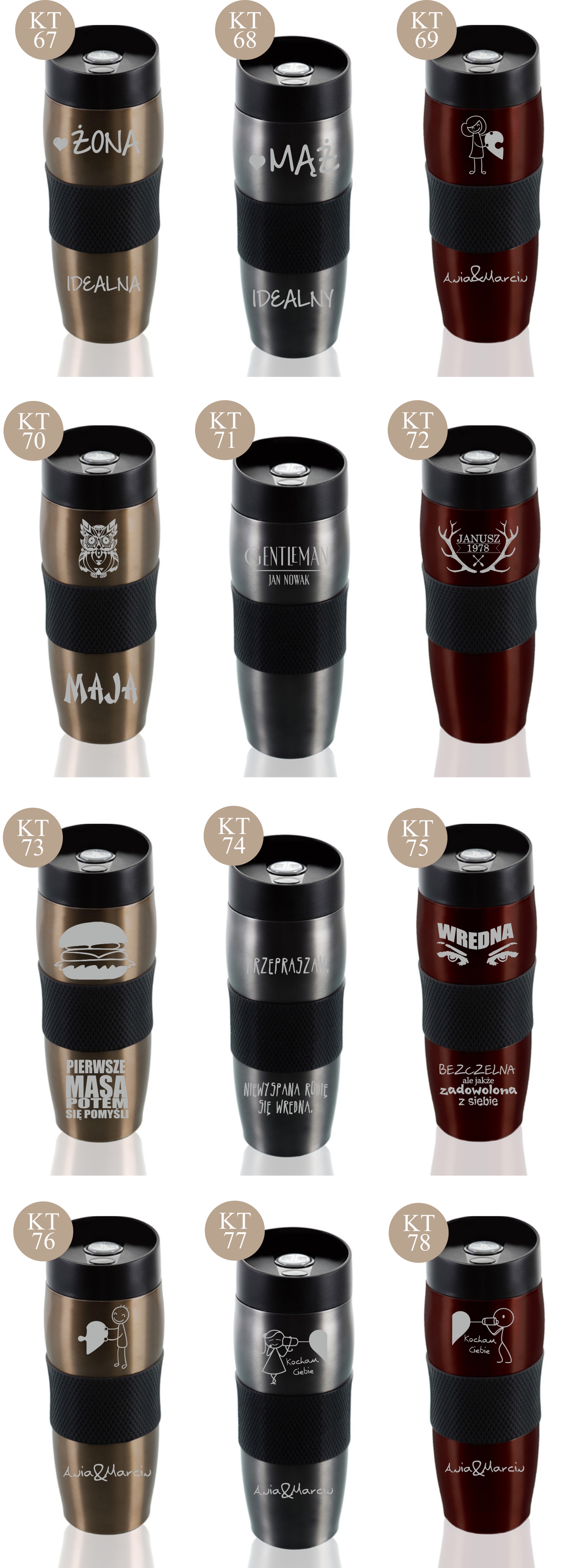 Przykładowe wzory kubków z grawerem: