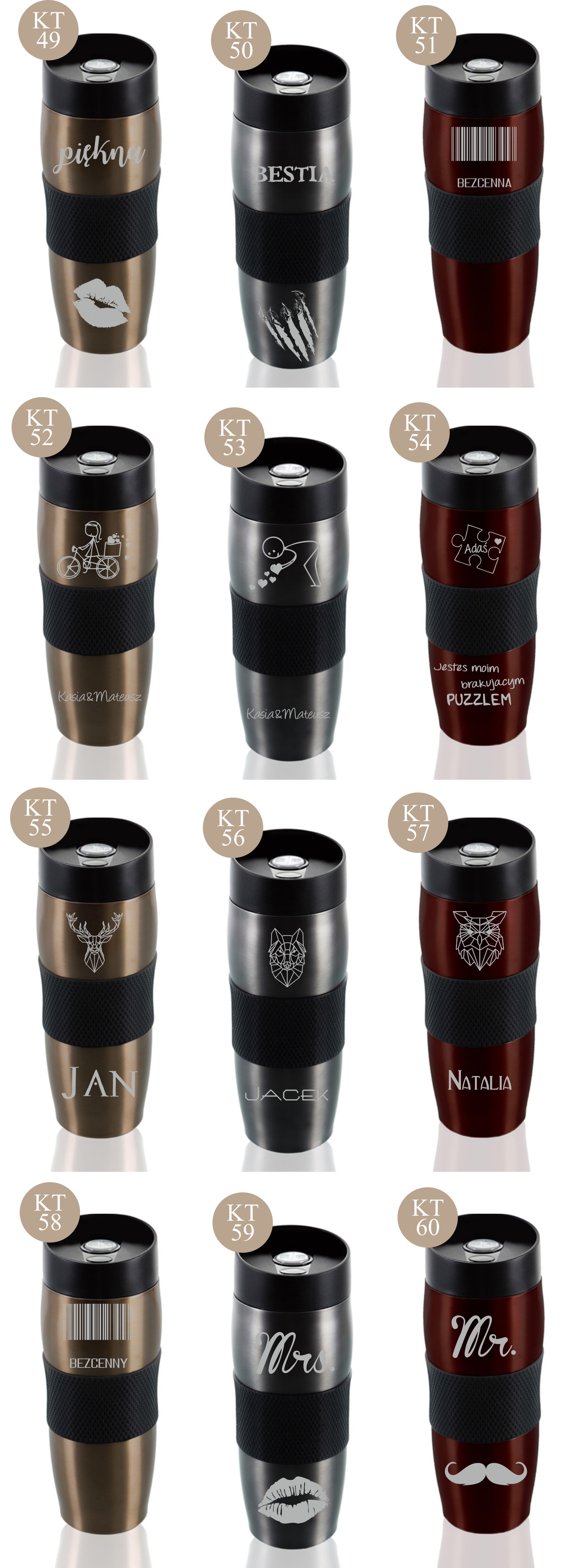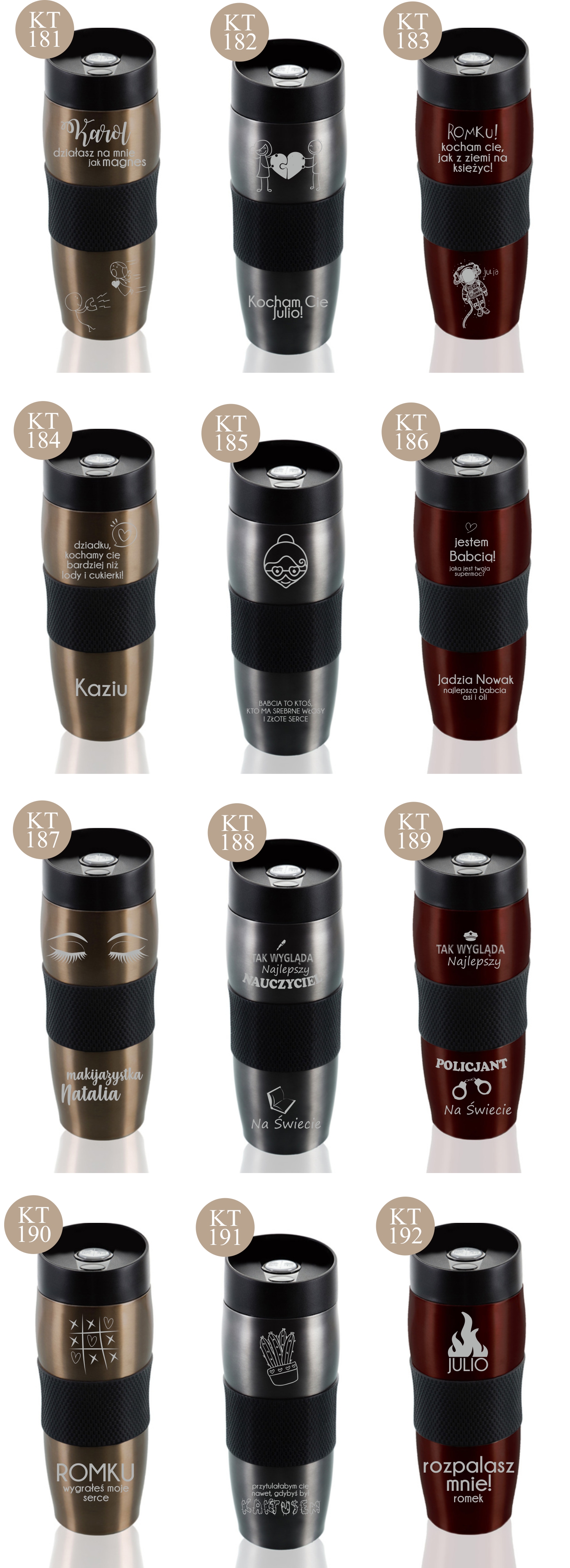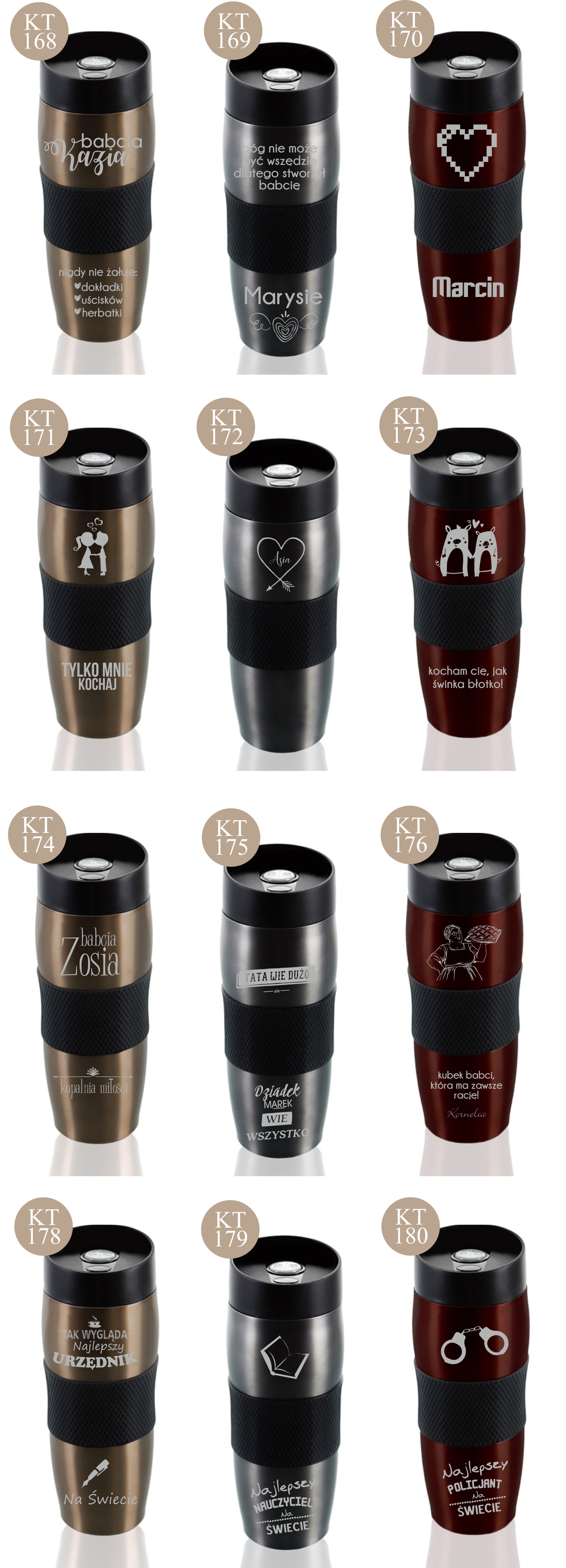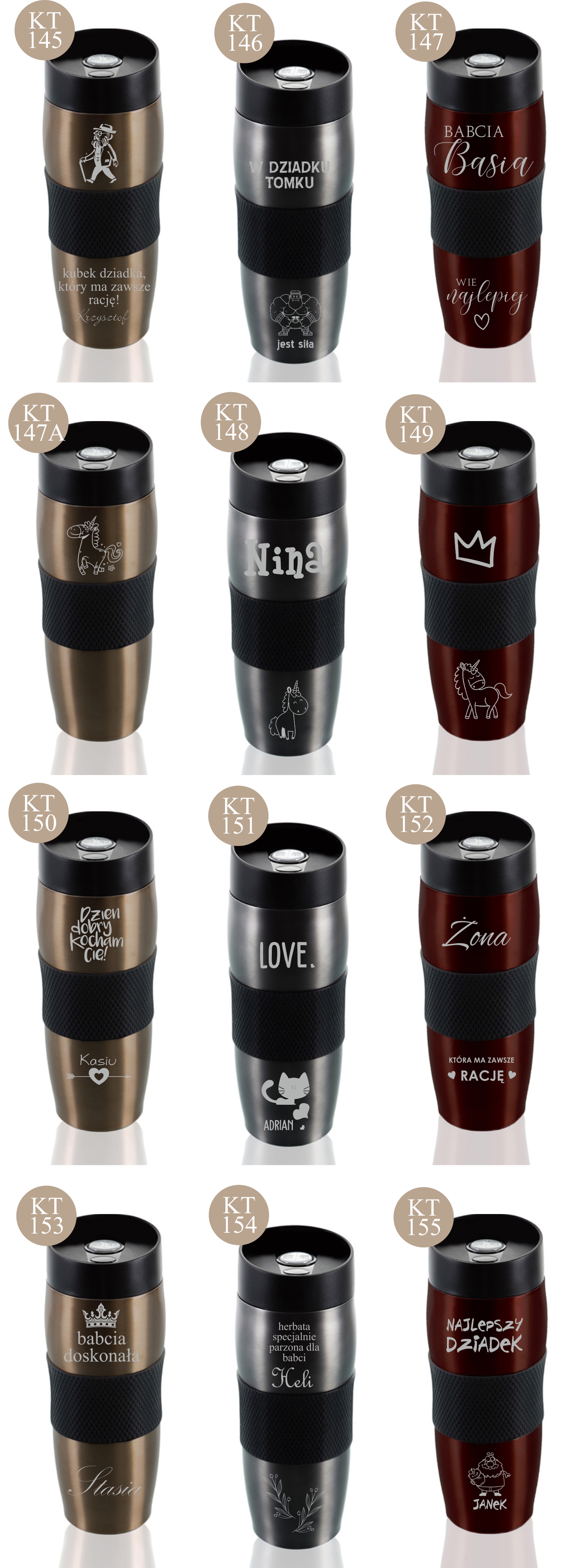 Przykładowe wzory kubków z grawerem: