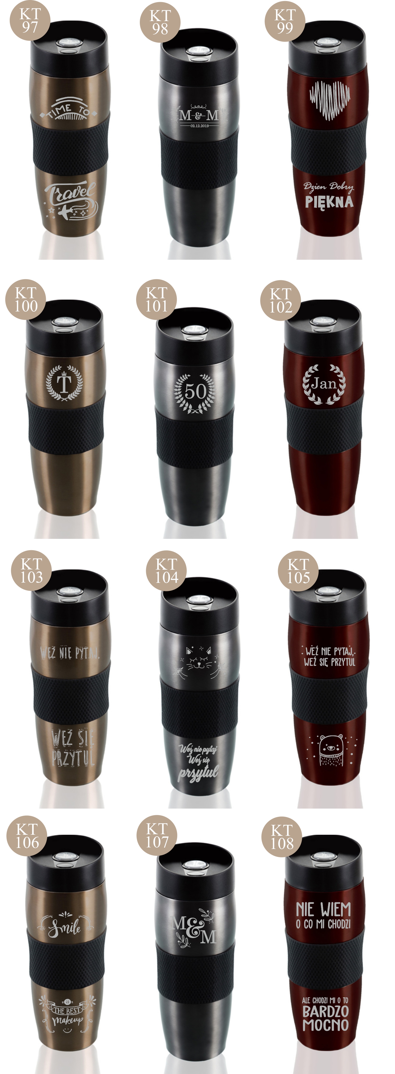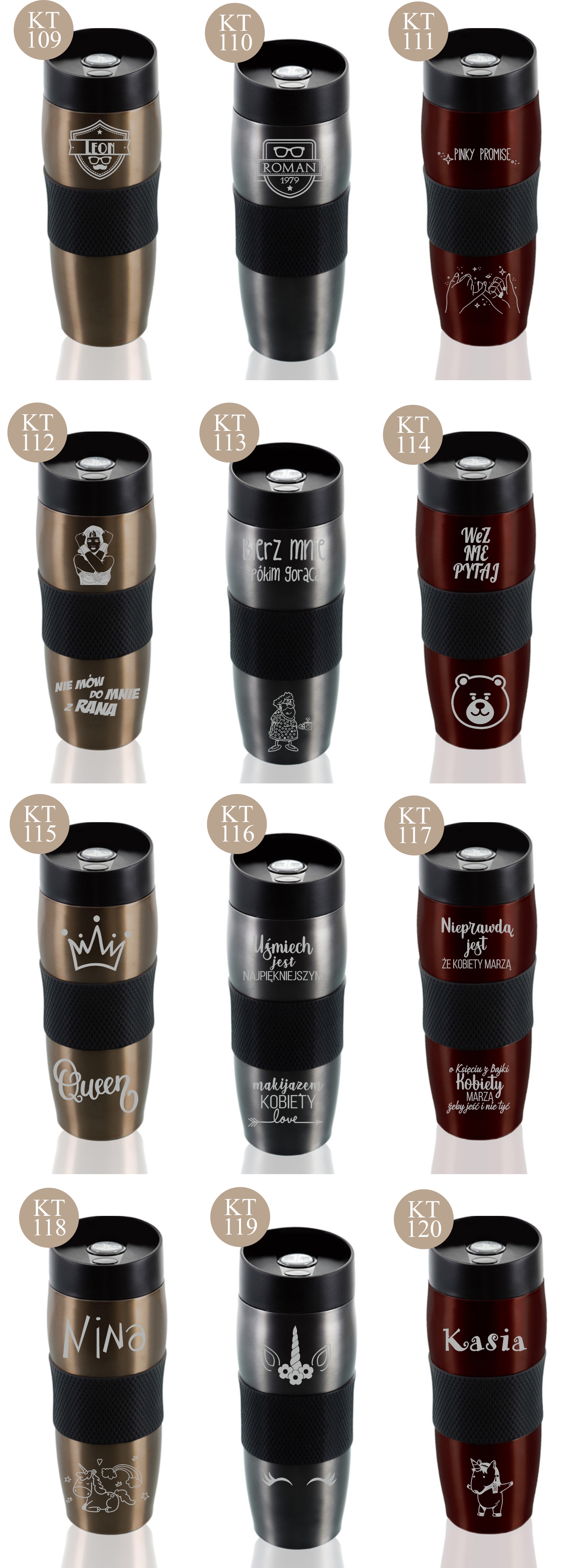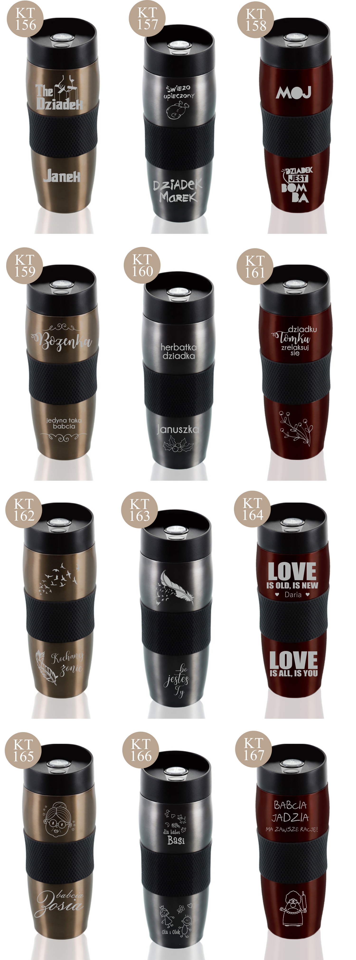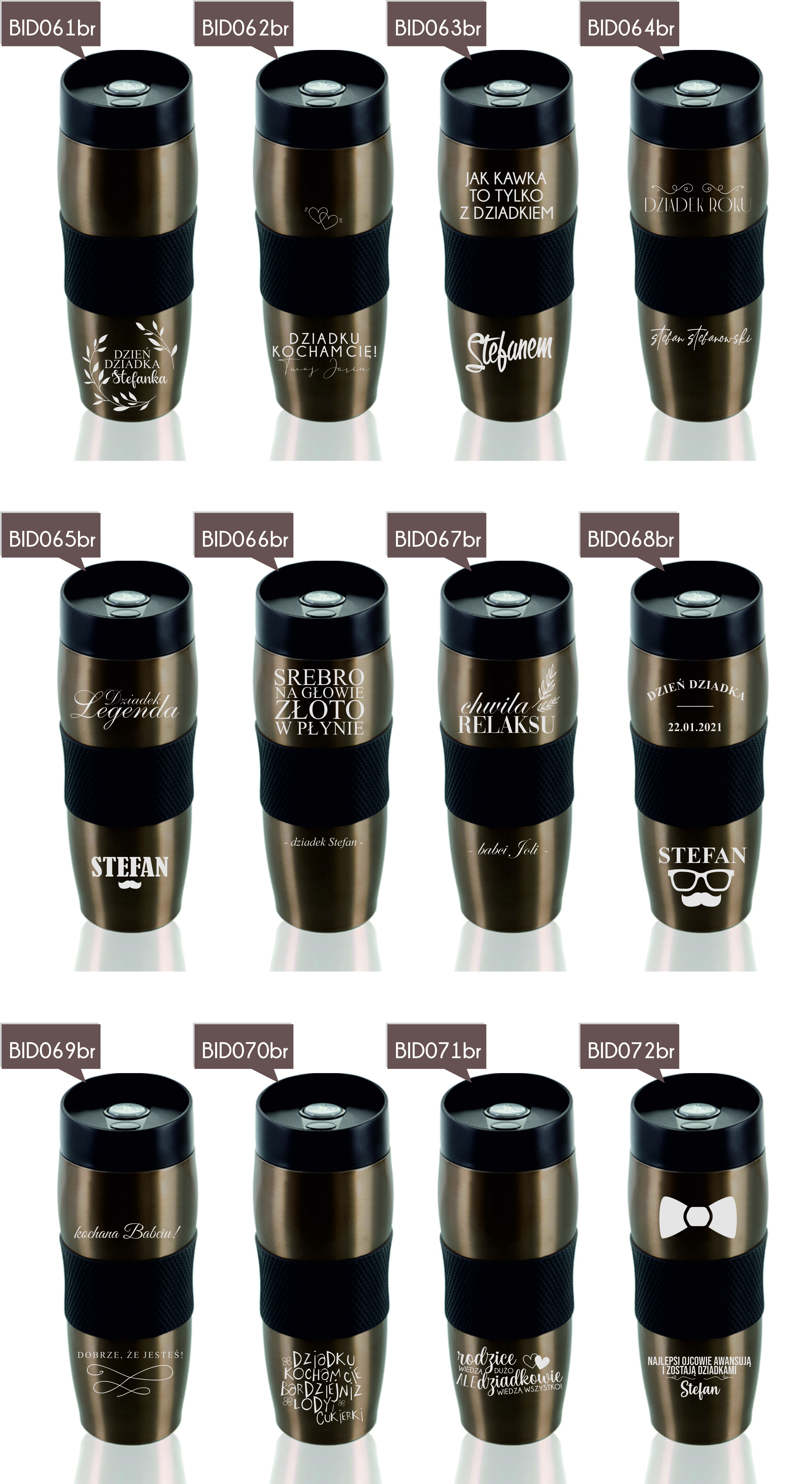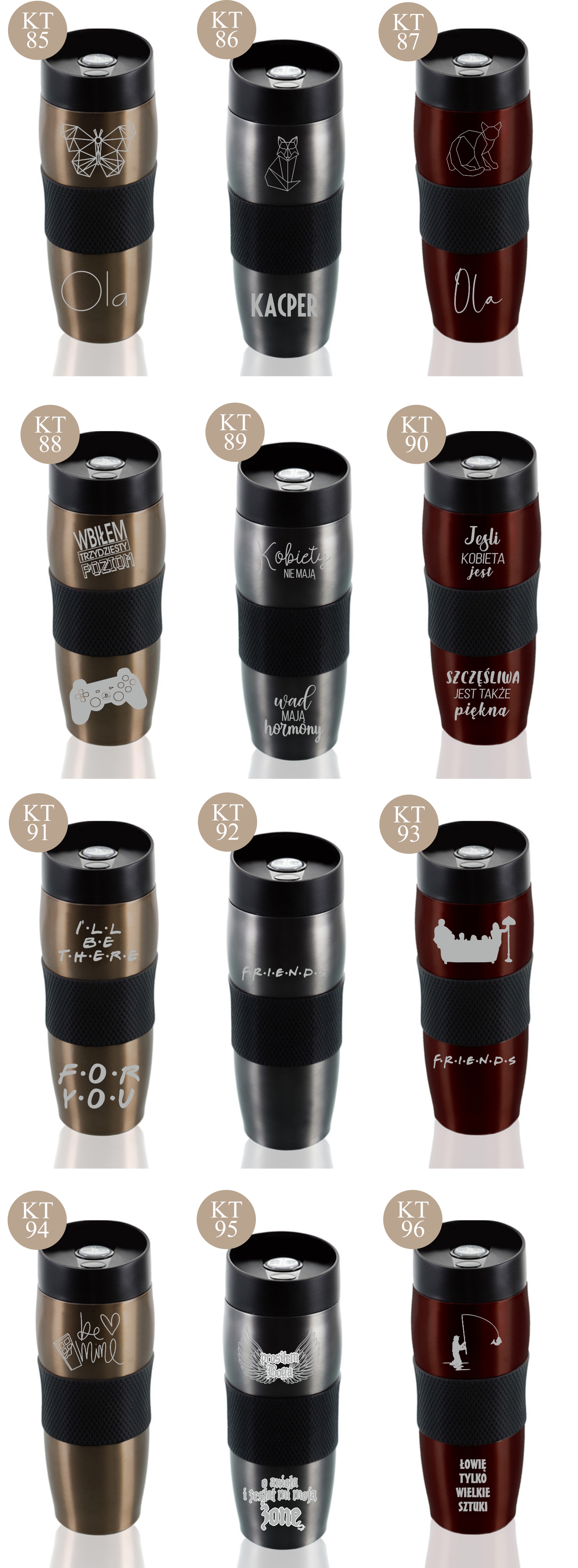 Przykładowe wzory kubków z grawerem: