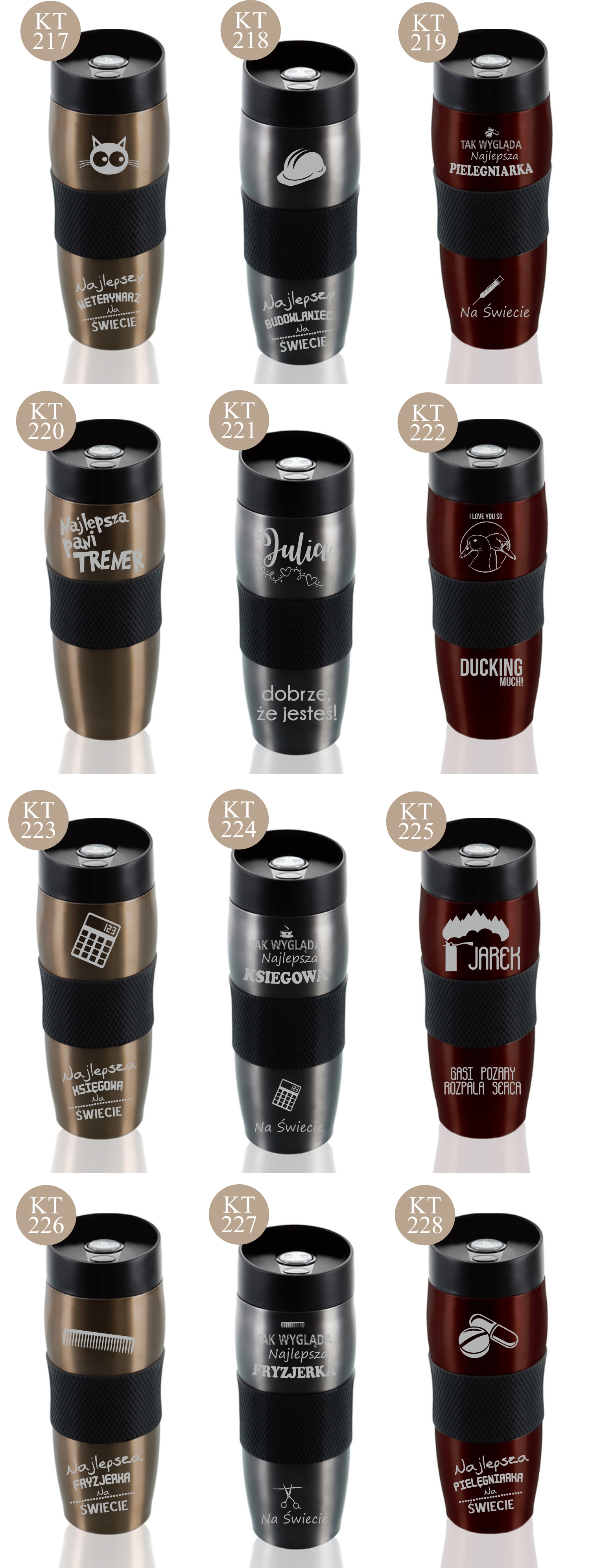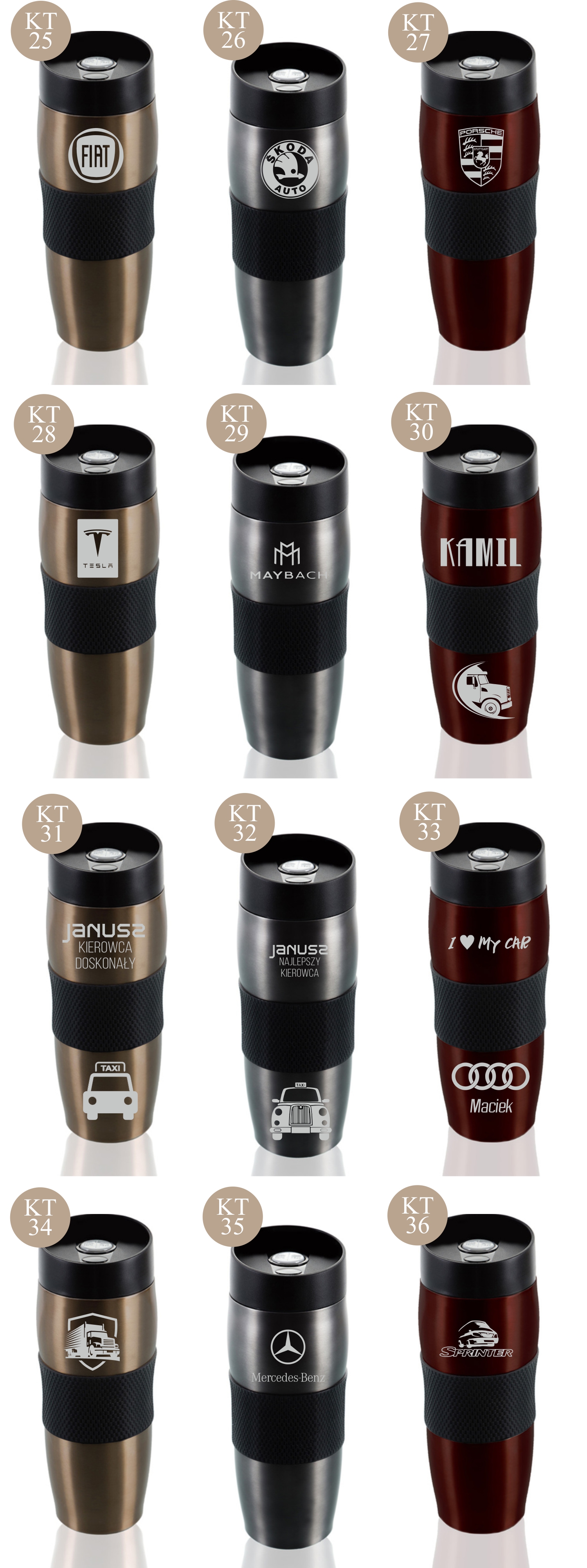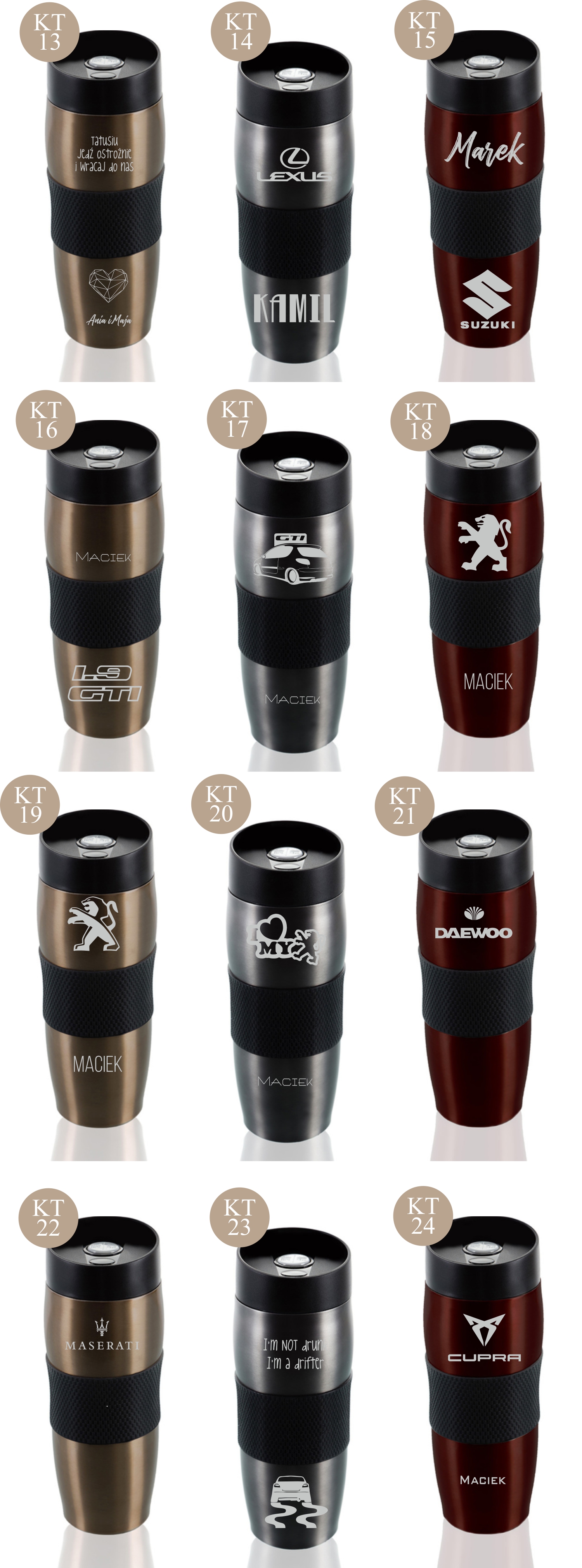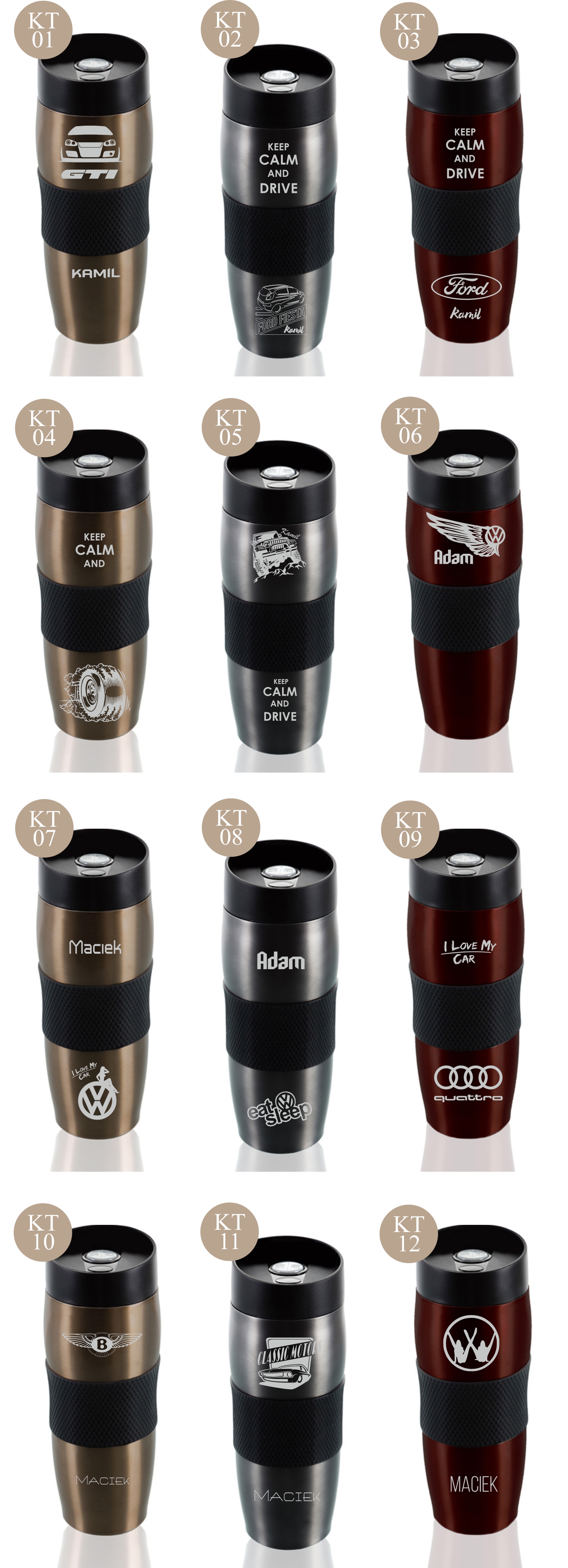 Przykładowe wzory kubków z grawerem: