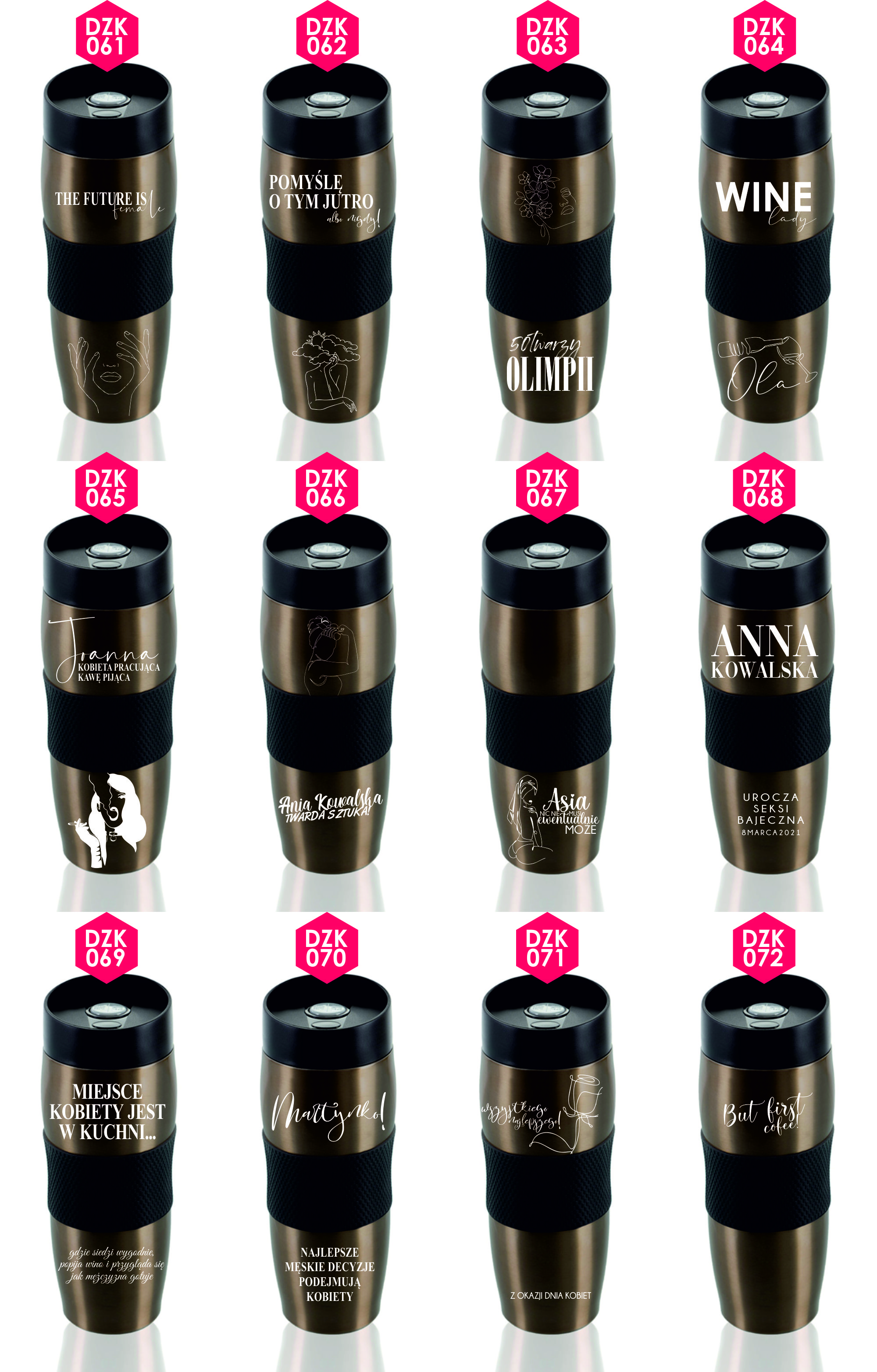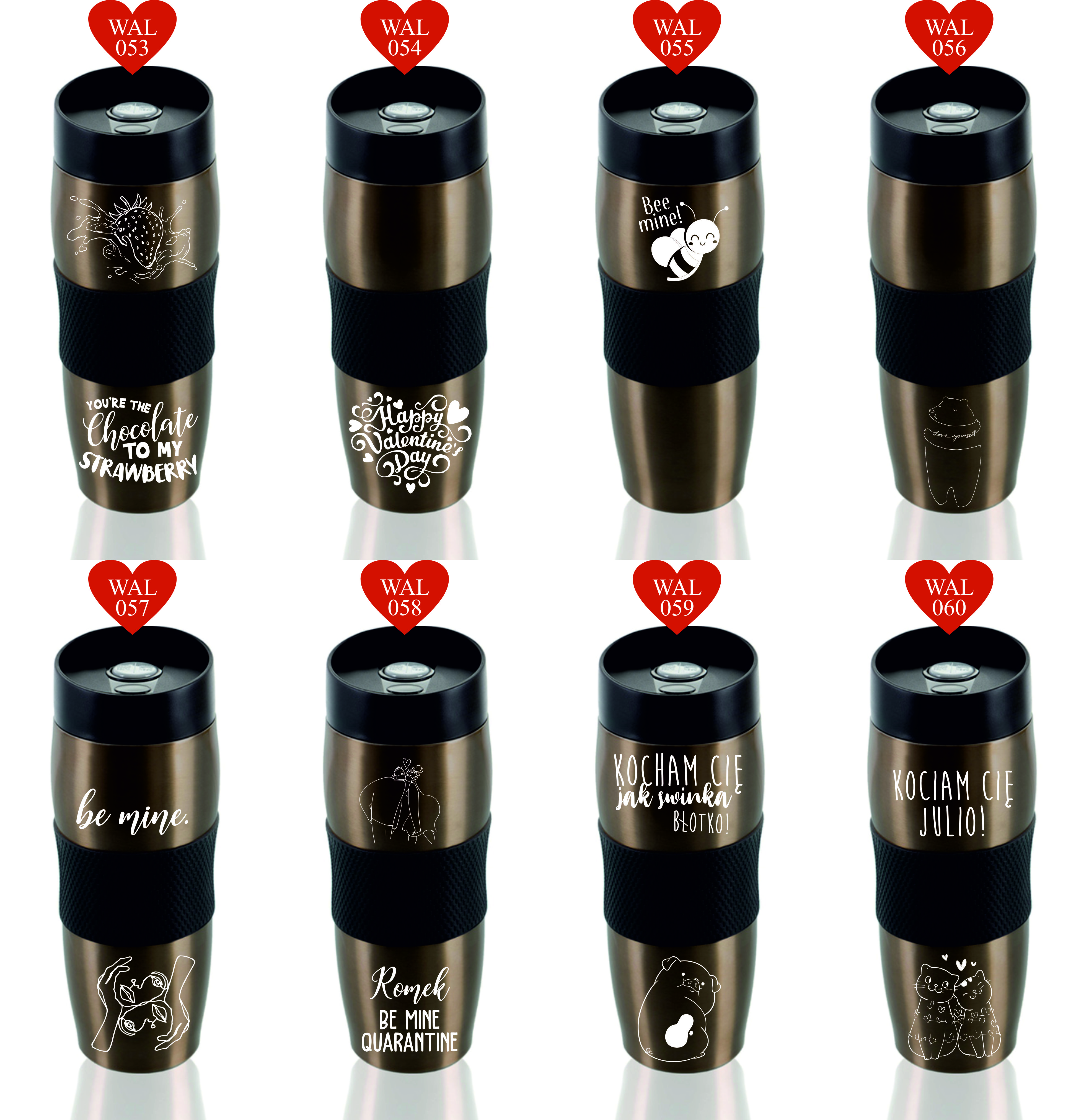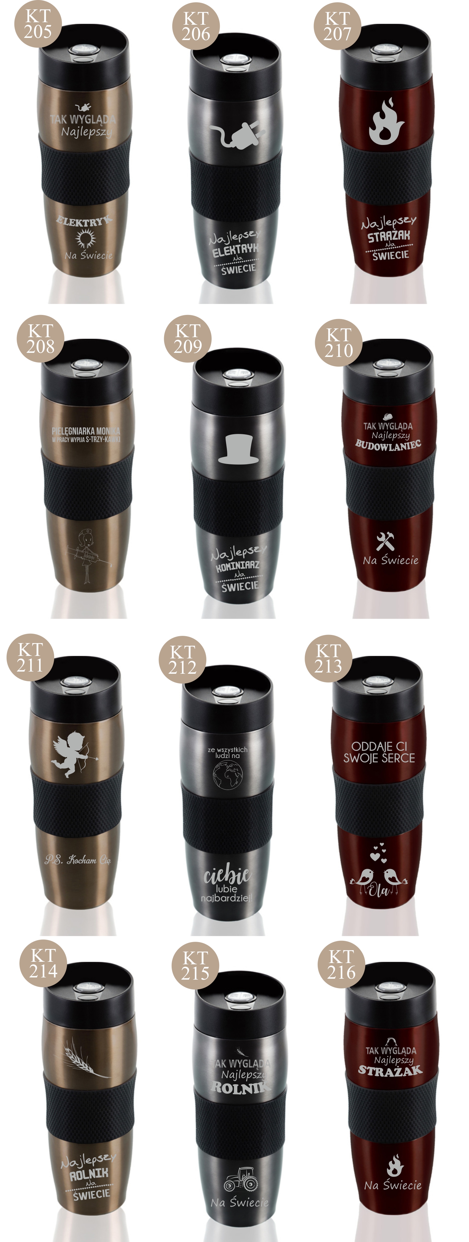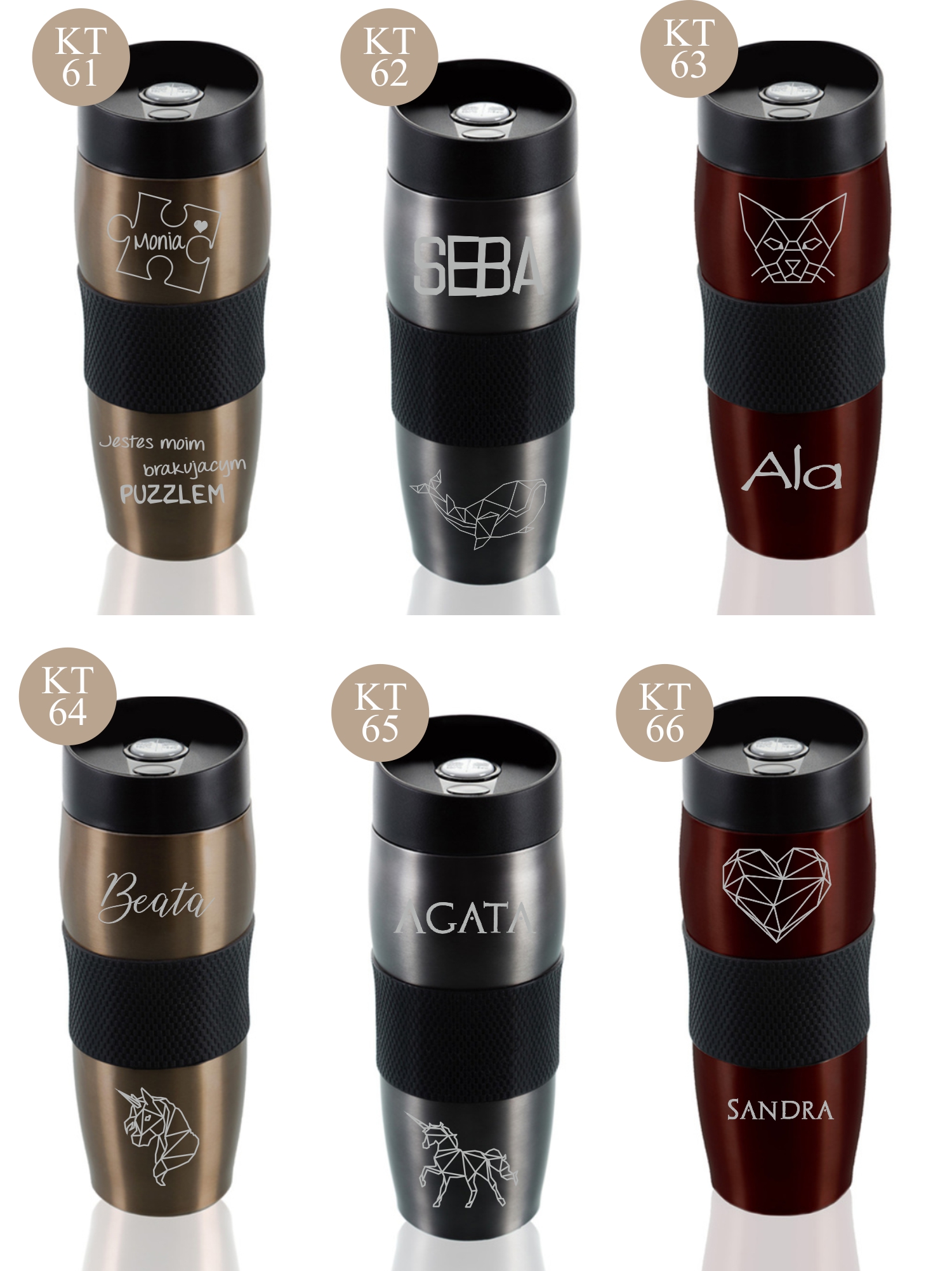 Przykładowe wzory kubków z grawerem: