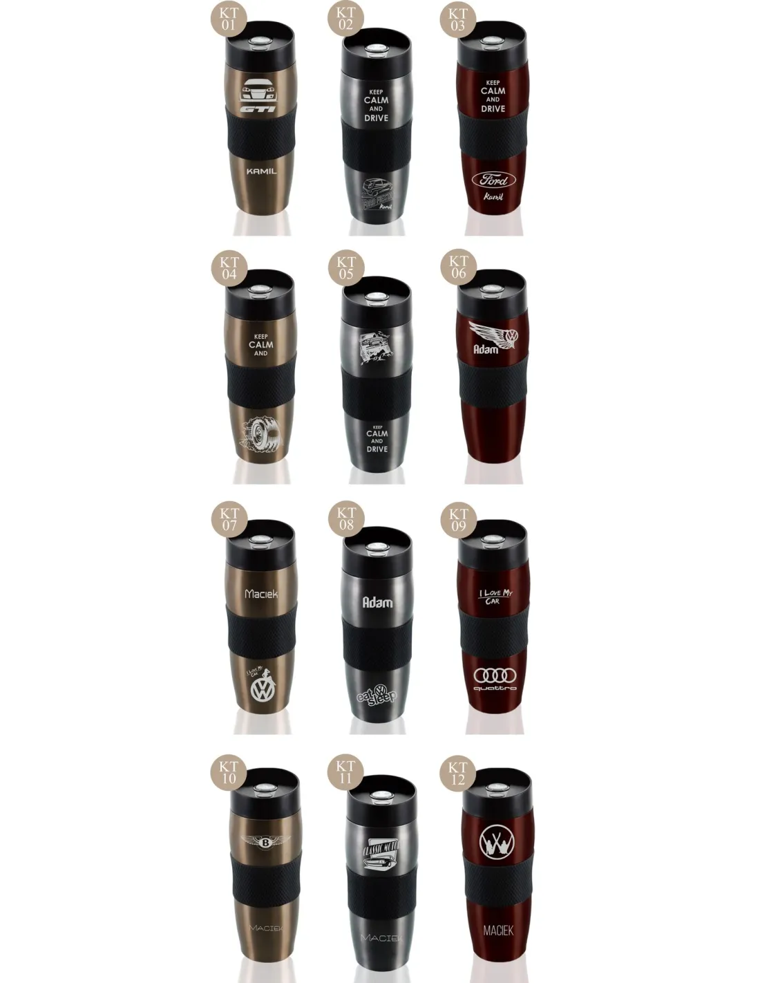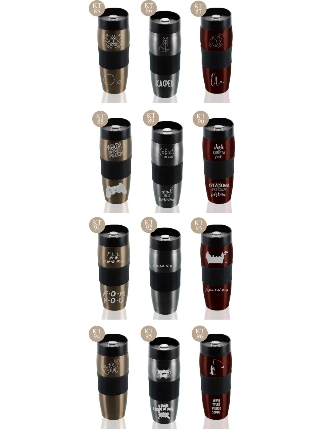 Przykładowe wzory kubków z grawerem: