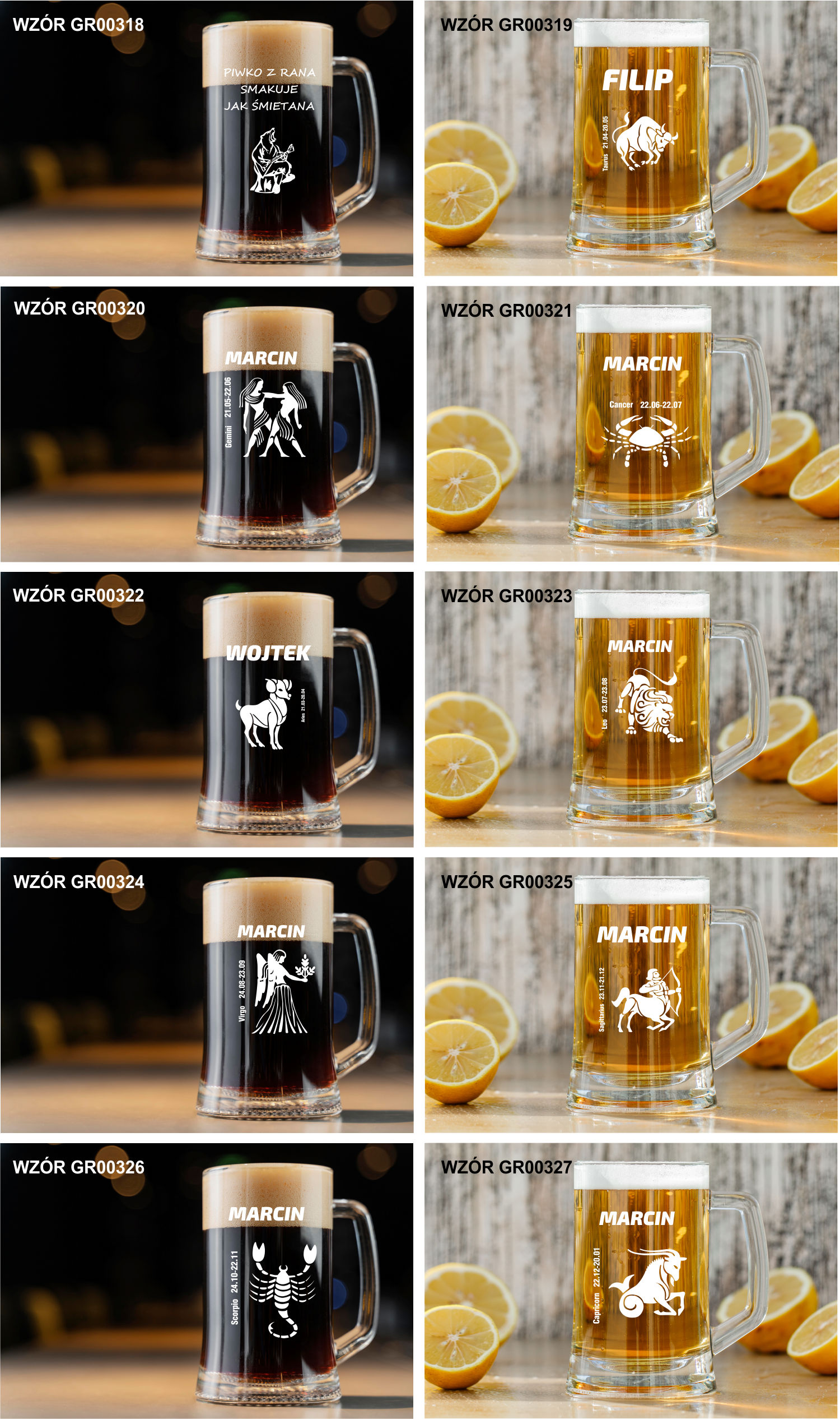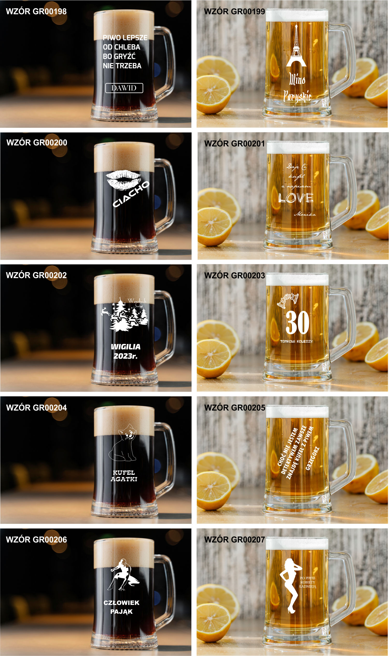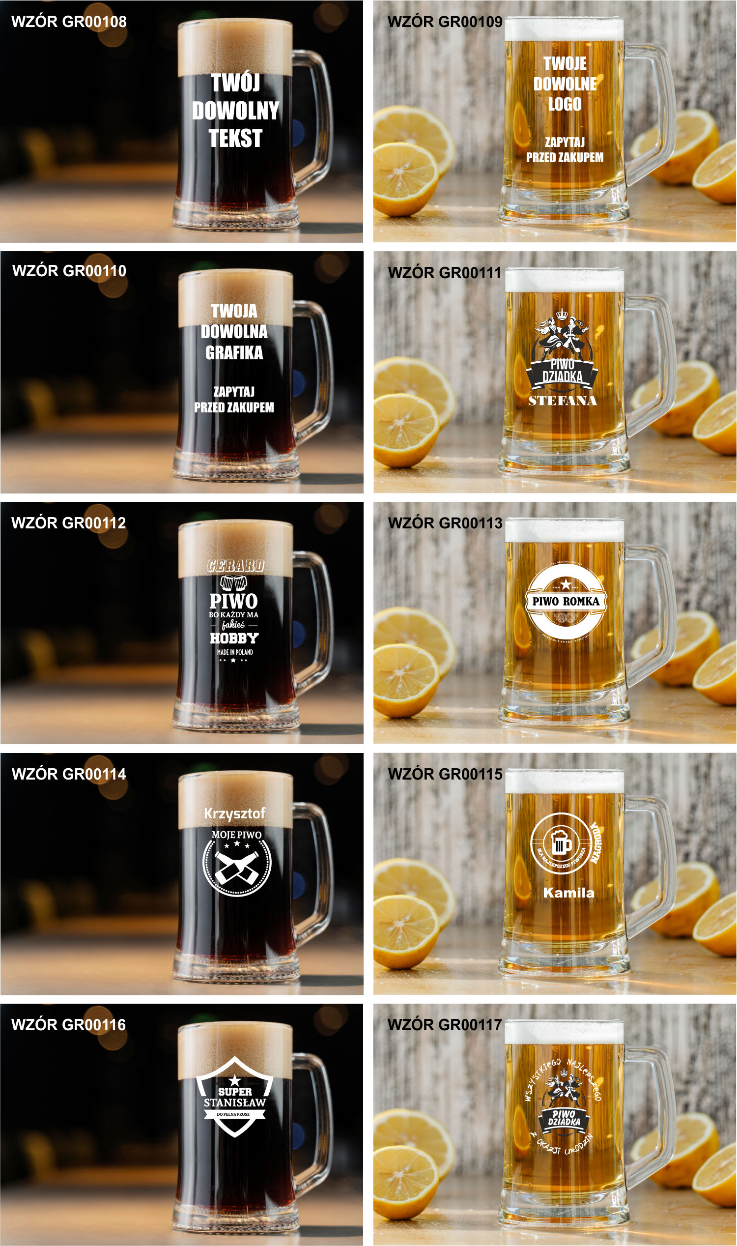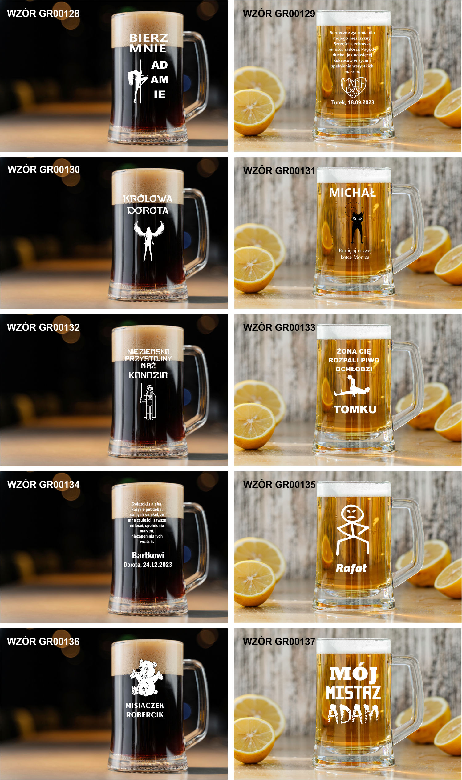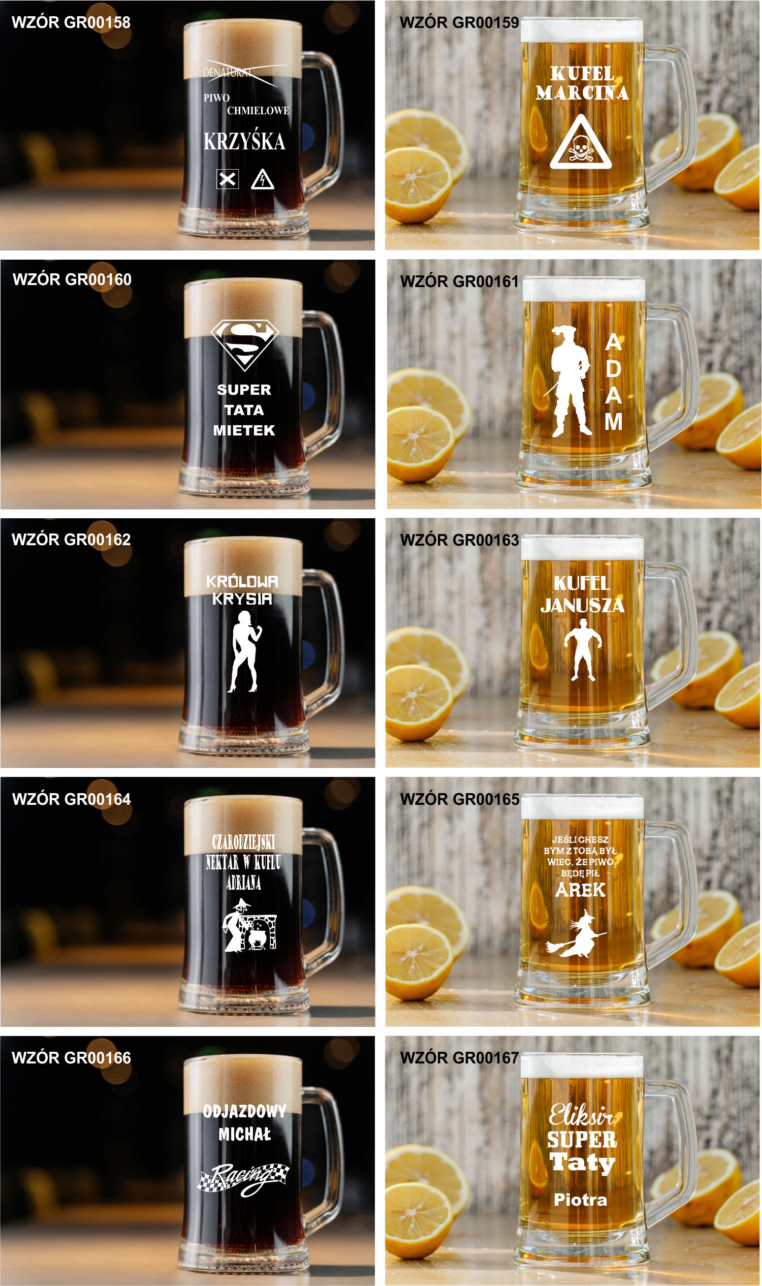 Przykładowe wzory kufli z grawerem: