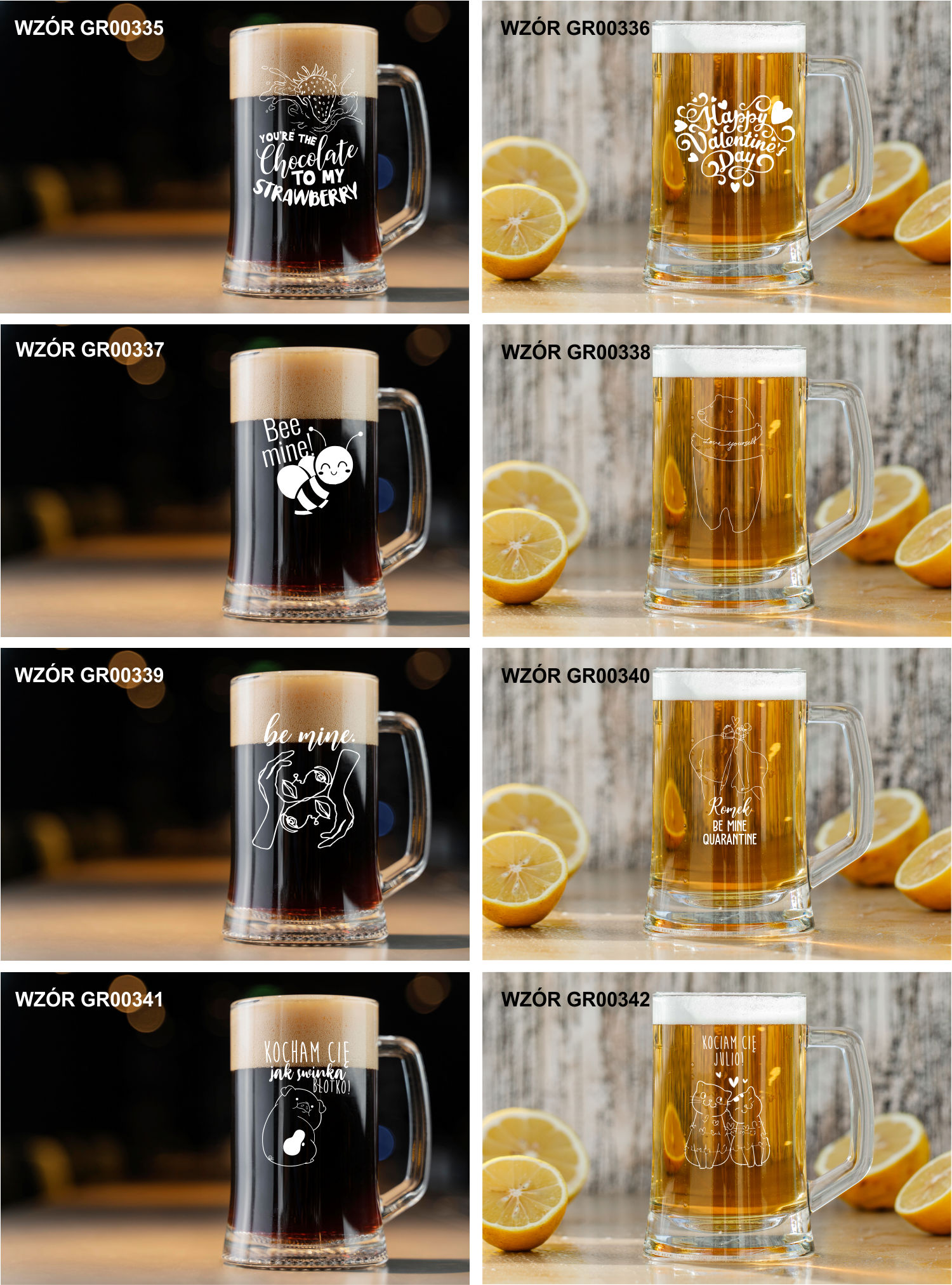 Przykładowe wzory kufli z grawerem: