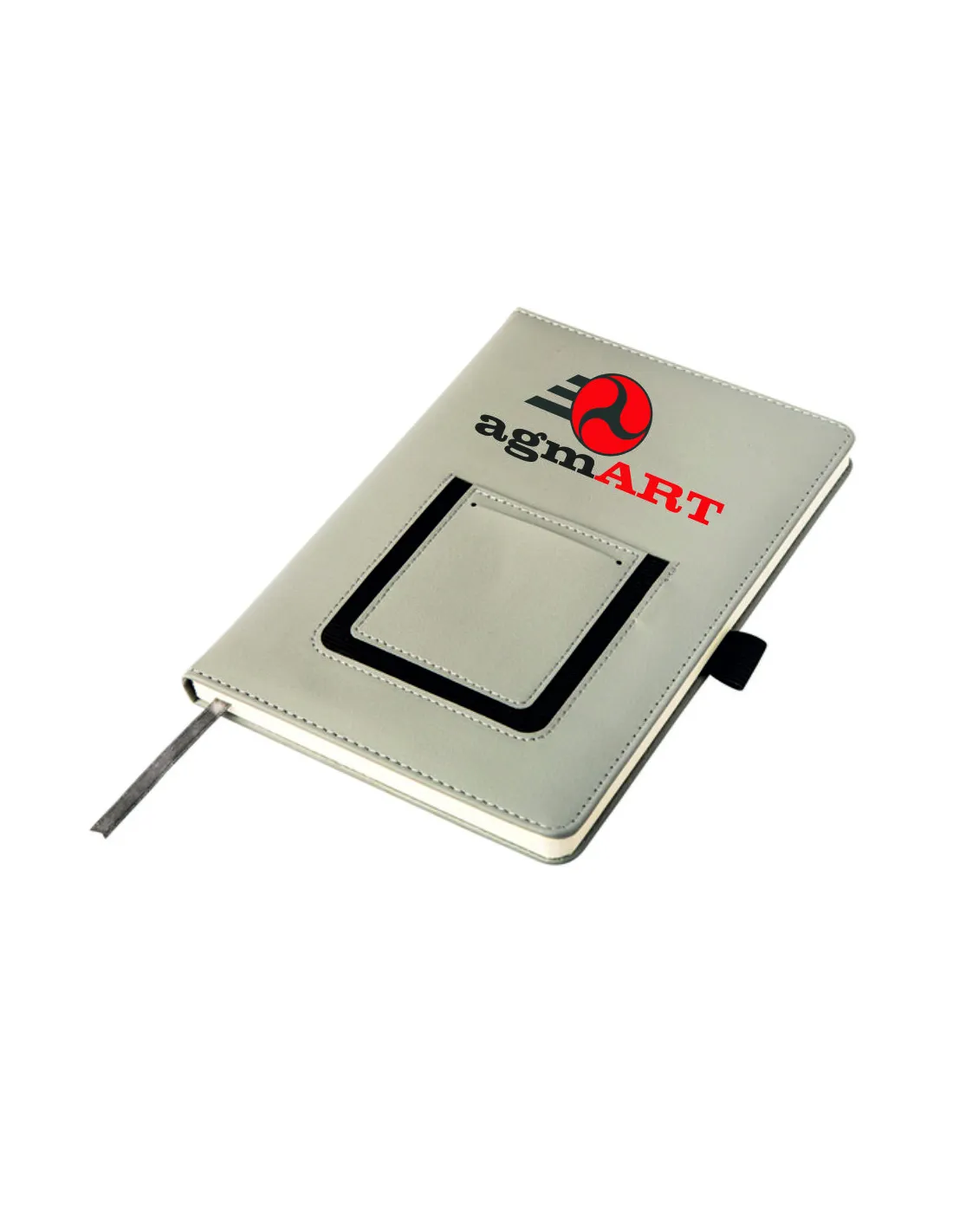 Notatnik szary notes z kieszonką na telefon A5 nadruk logo gadżet firmowy 10sztuk