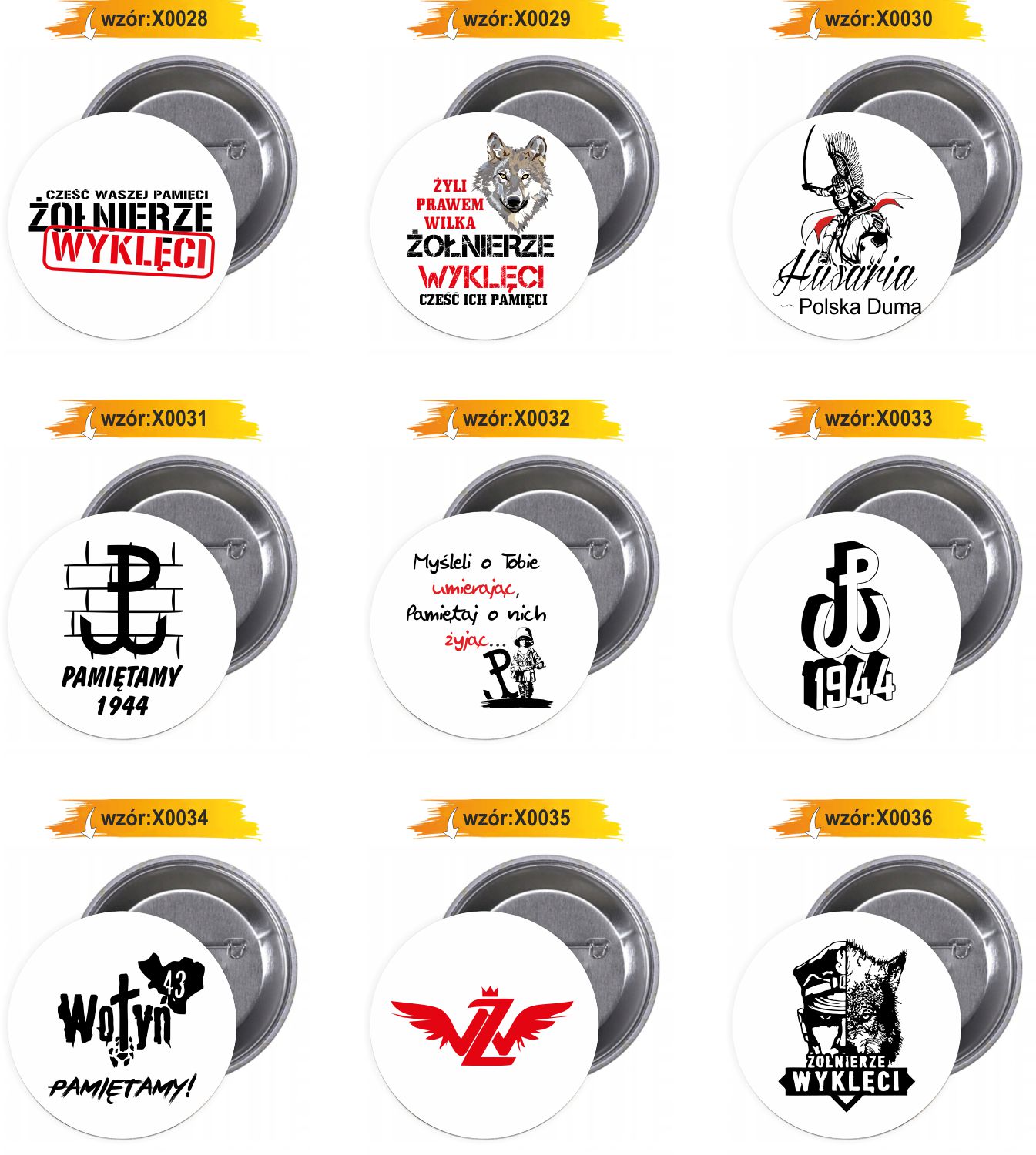Dostępne gotowe wzory przypinek i buttonów: