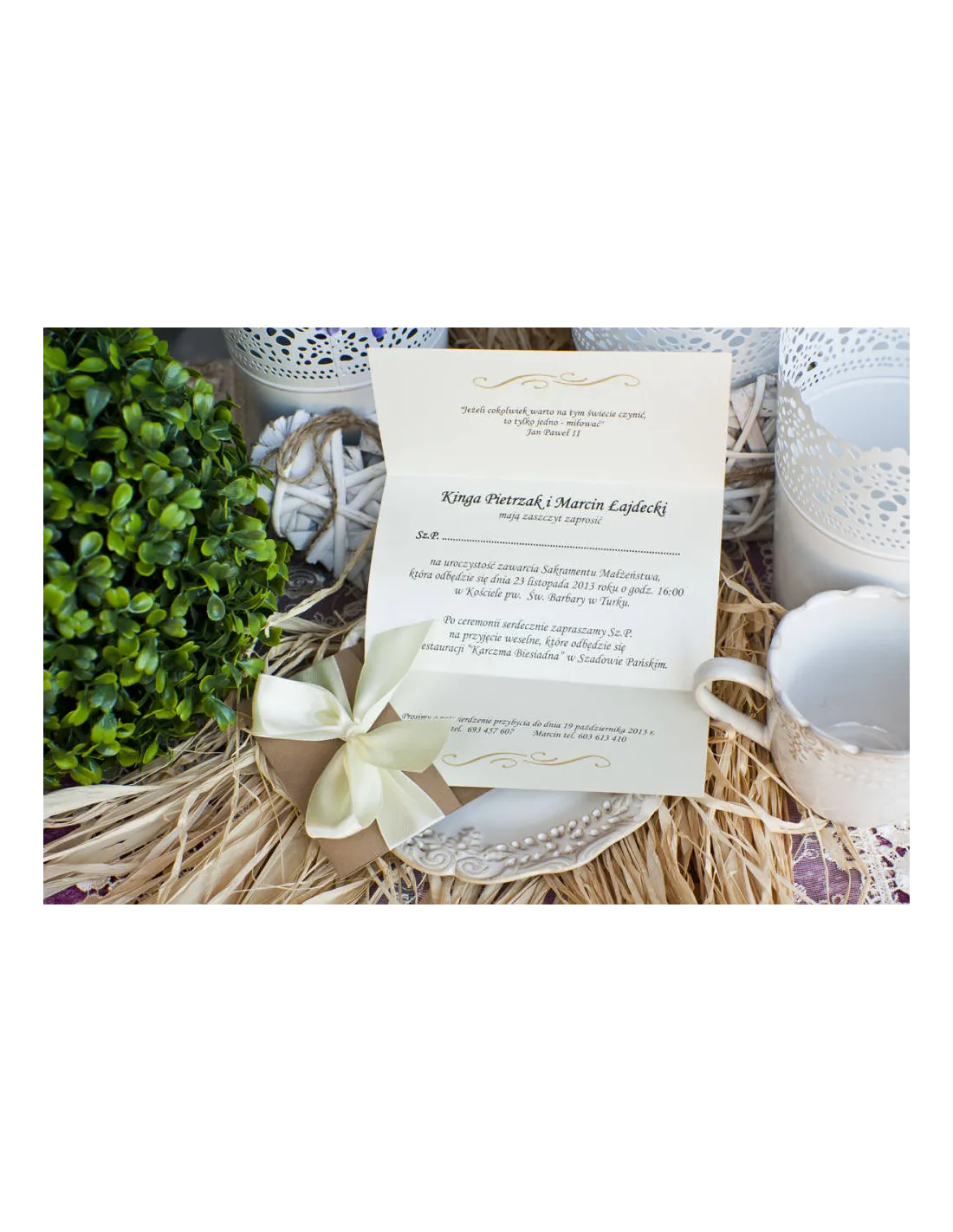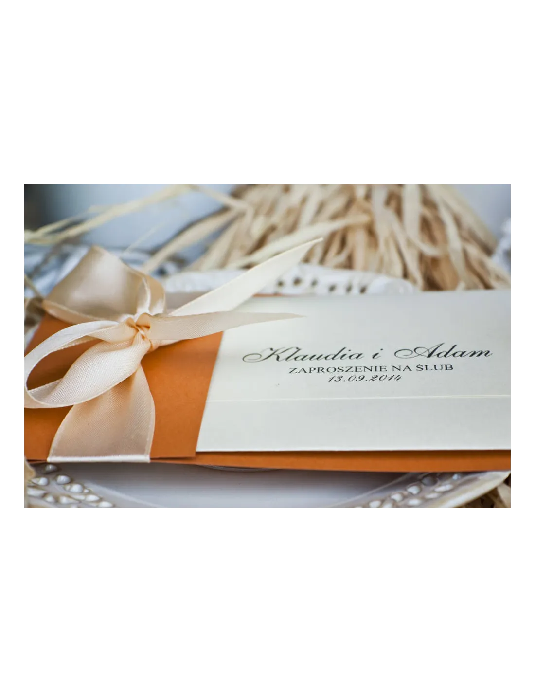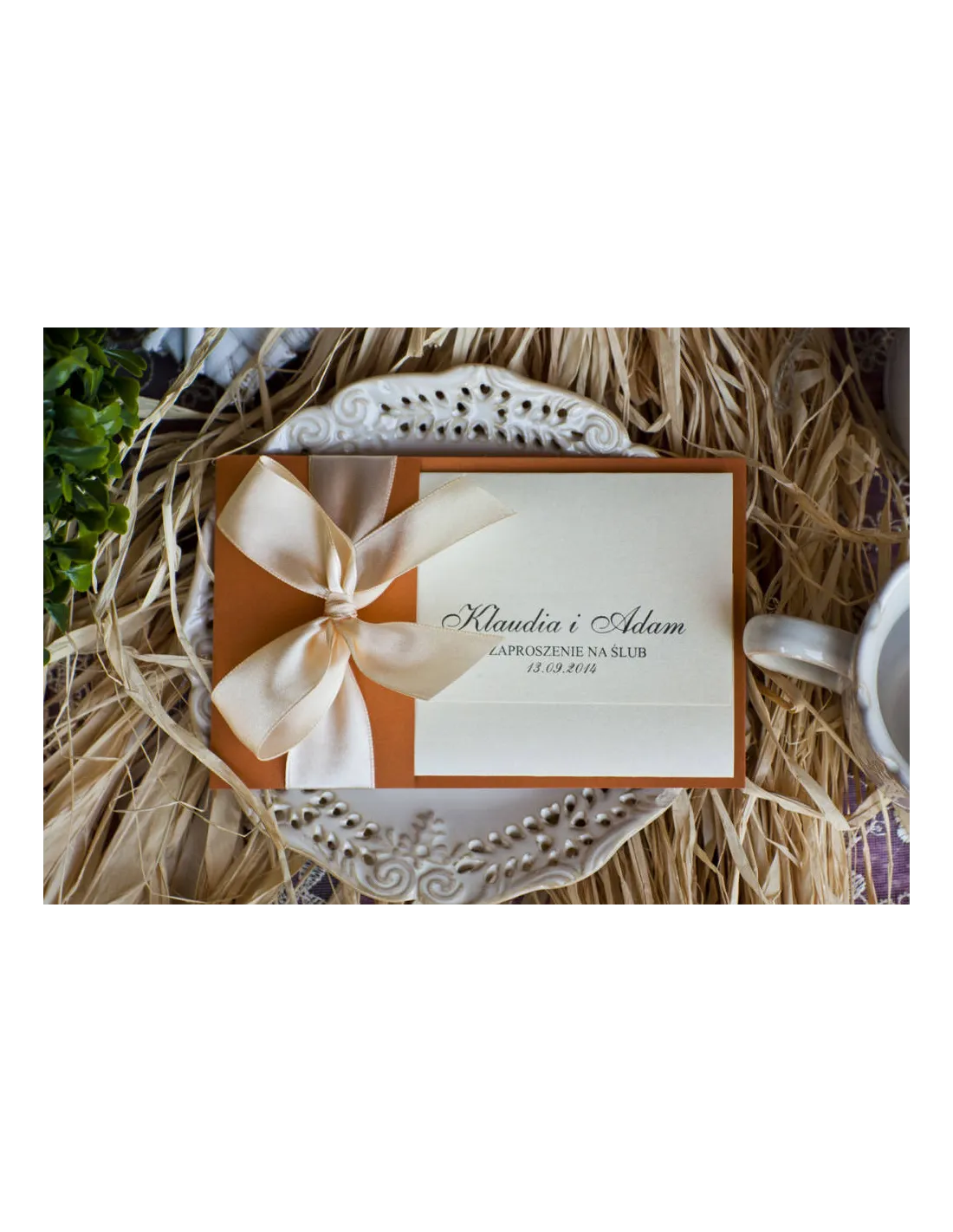 ZAPROSZENIA ślubne Perłowe Glamour Rude z kremową kokardą satynową