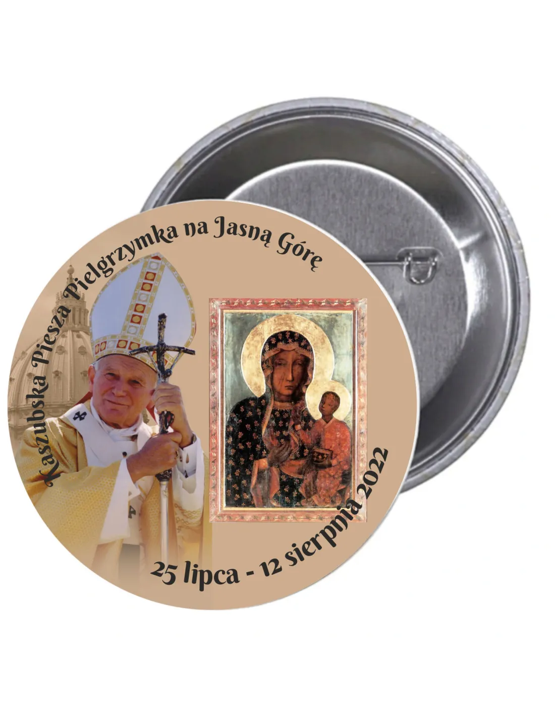 Przypinki buttony PIELGRZYMKA - KASZUBSKA PIESZA PIELGRZYMKA NA JASNĄ GÓRĘ znaczki badziki z grafiką